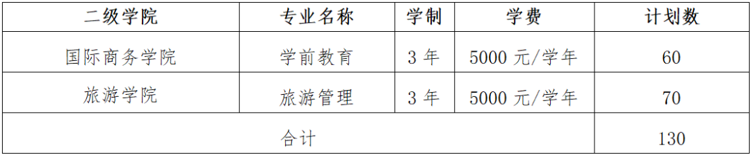 实操类招生计划共计130人,招生专业只有学前教育、旅游管理等2个专业,文、理、三校兼收,不可与普通类专业兼报。考试科目:文化素质考试+职业技能测试。