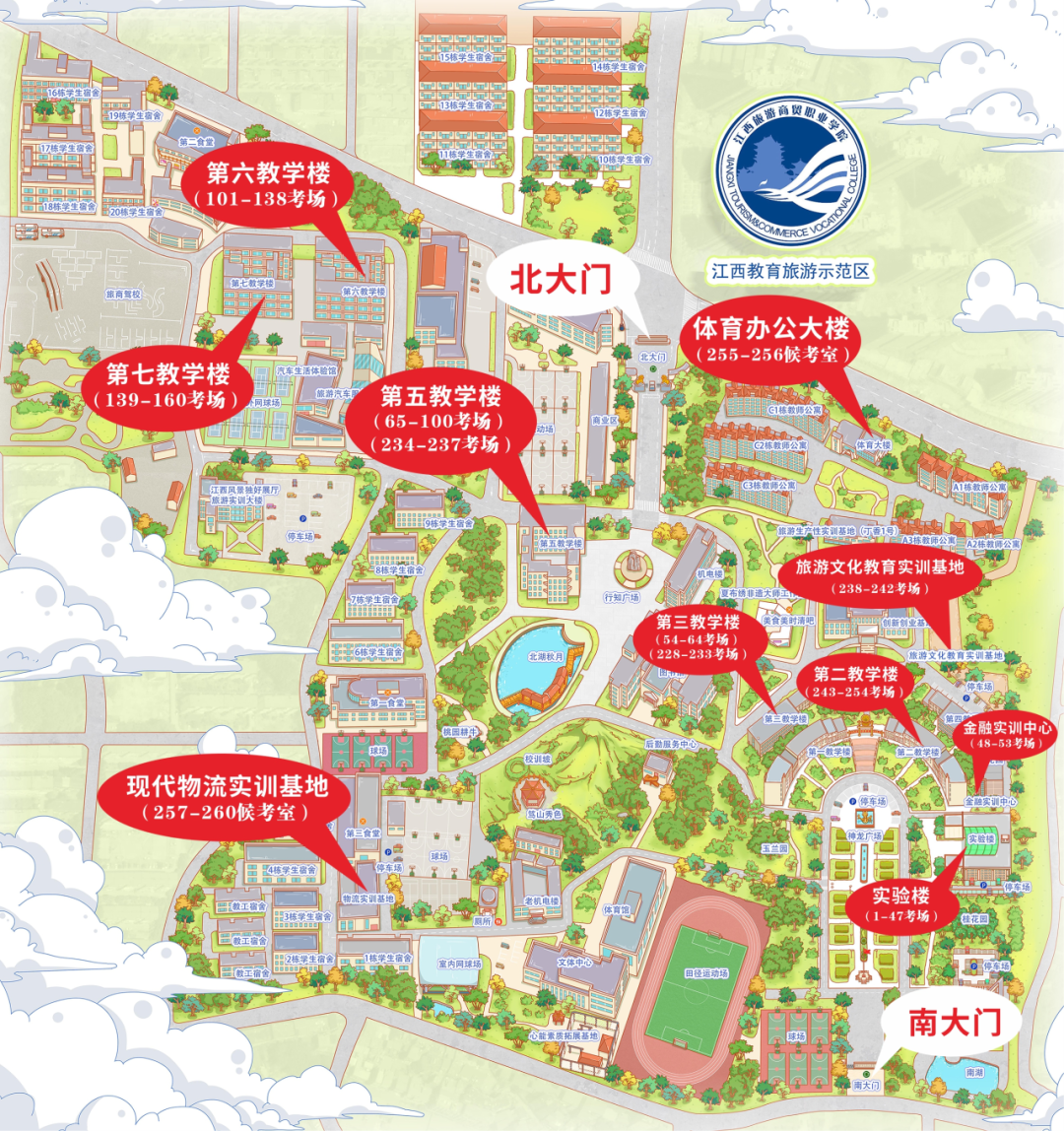 技能校考设江西旅游商贸职业学院、南昌师范学院(昌北校区)、萍乡市工业中等专业学校等3个考点。考生所在考点以准考证上标明的为准,切勿走错考点。