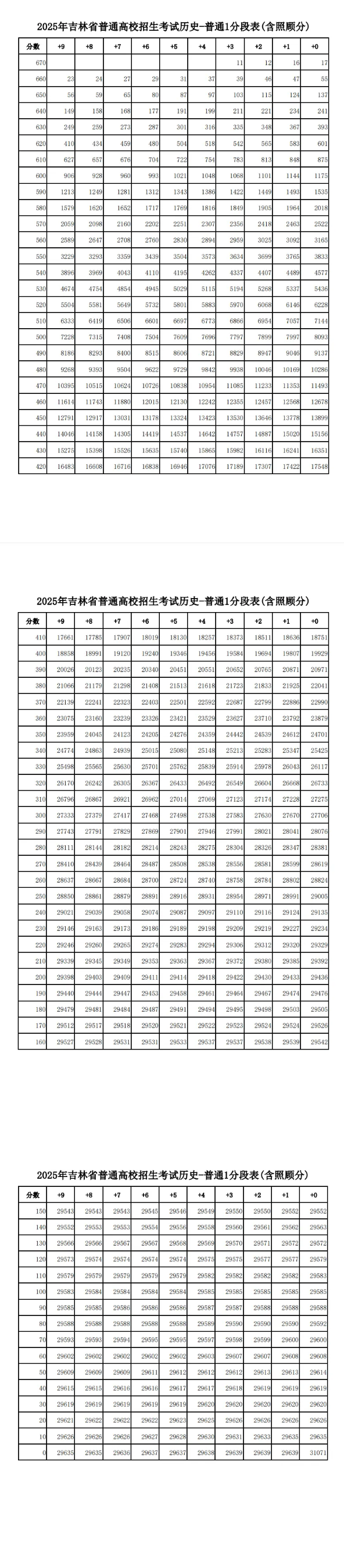 来源:吉林教育考试院 2025年吉林省高考成绩一分段表