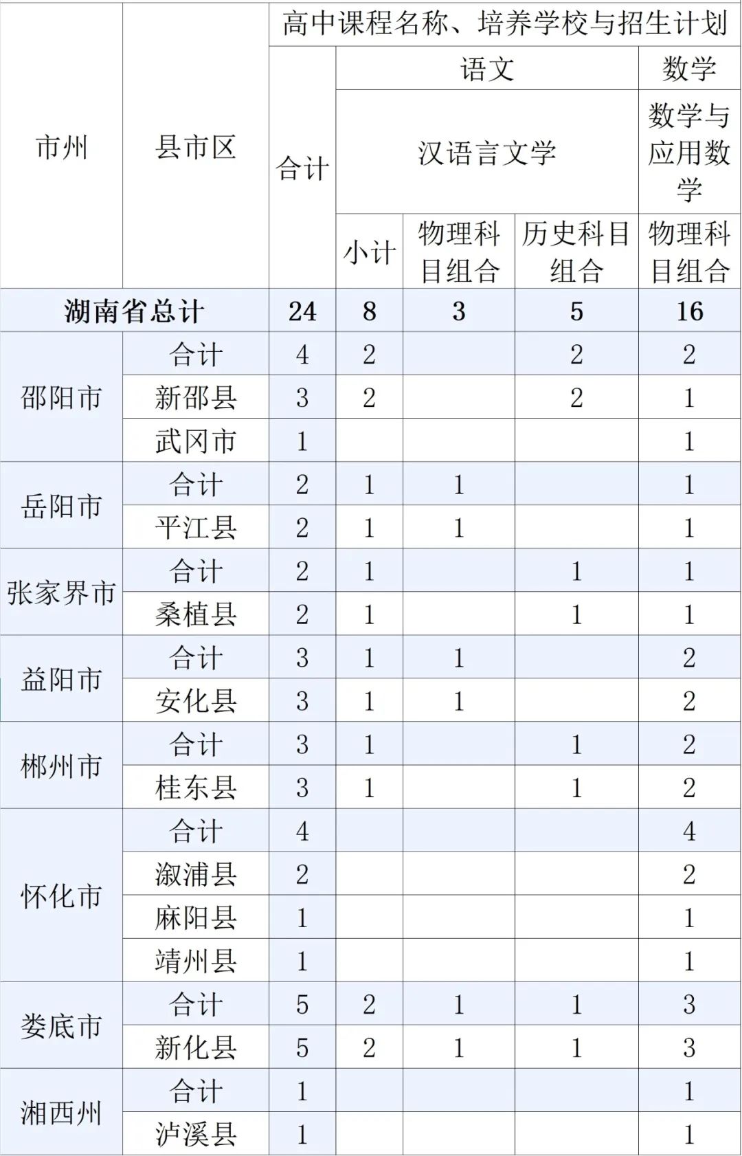 2025年湖南省高中起点本科层次乡村高中教师公费定向培养省级项目计划招生来源计划表 (分市州分县市区分专业)
