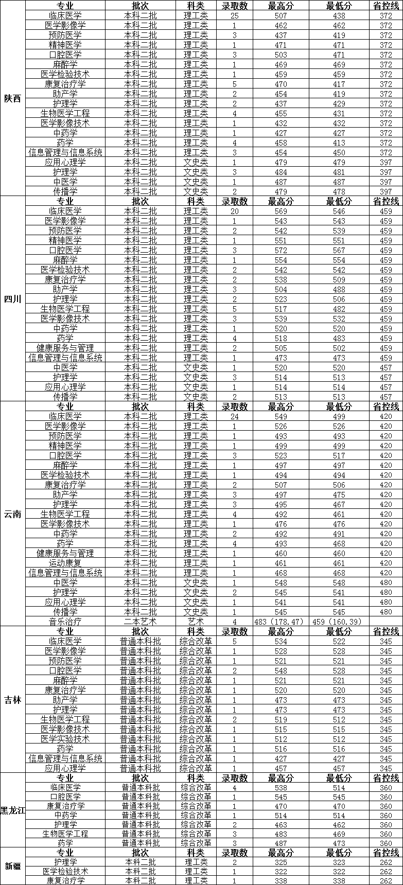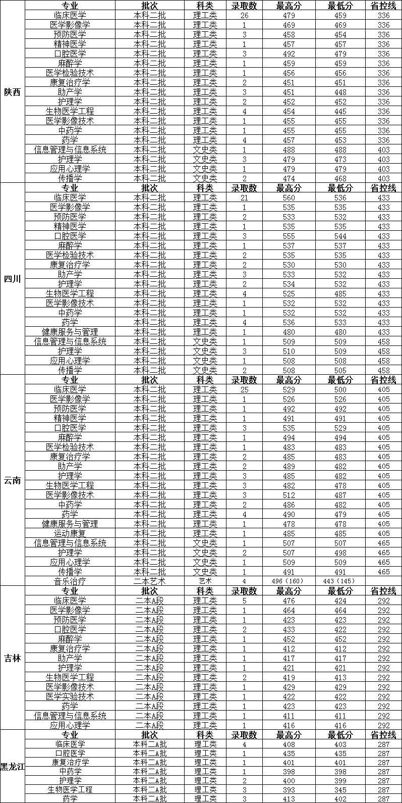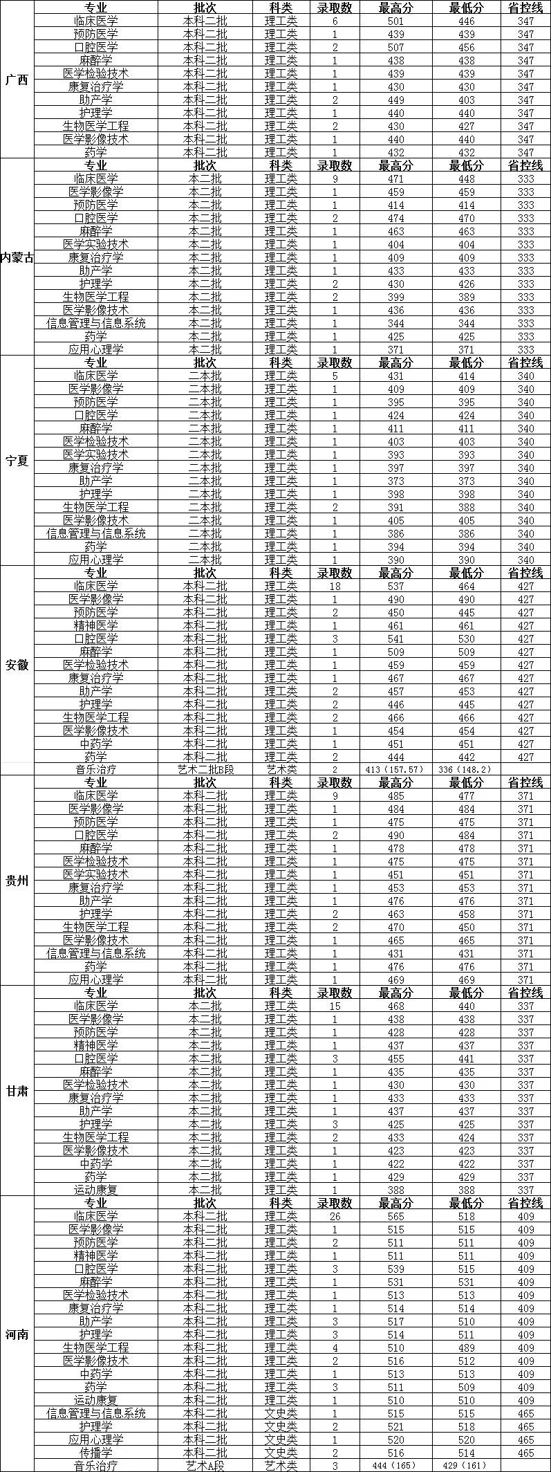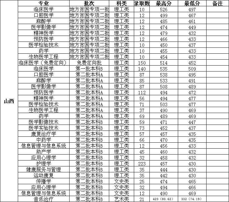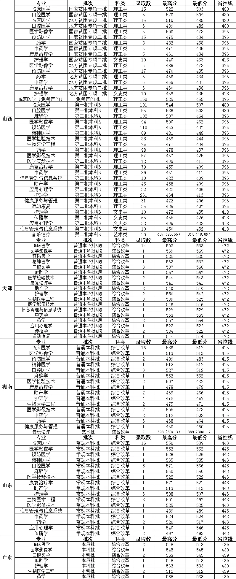 长治医学院2023年分省分专业录取情况