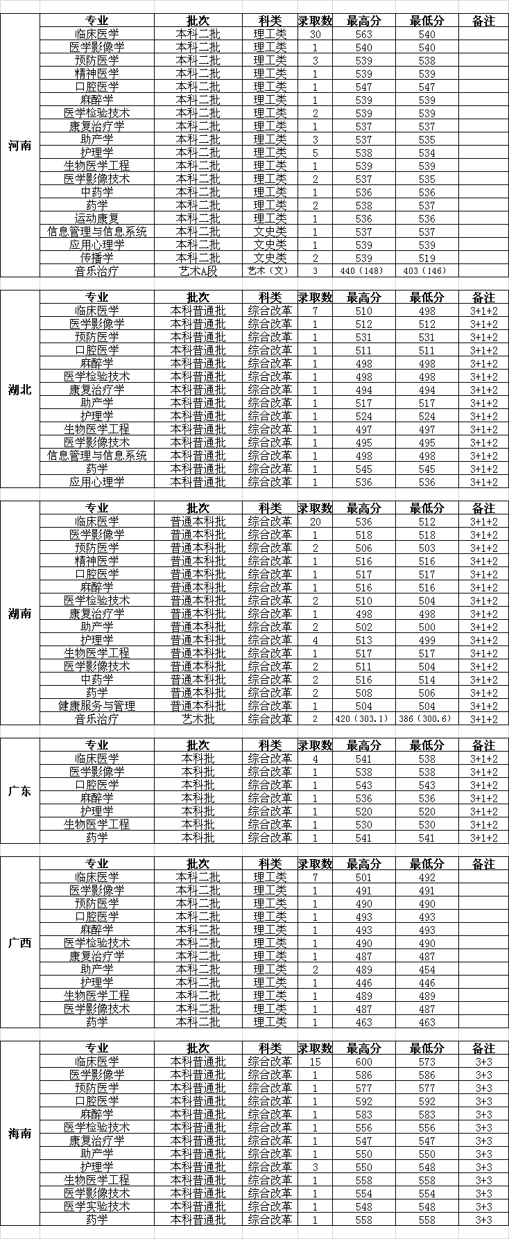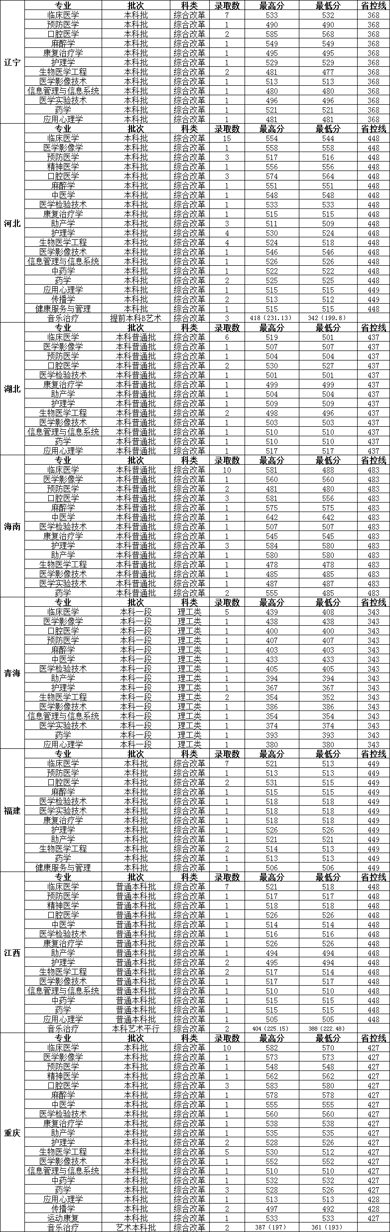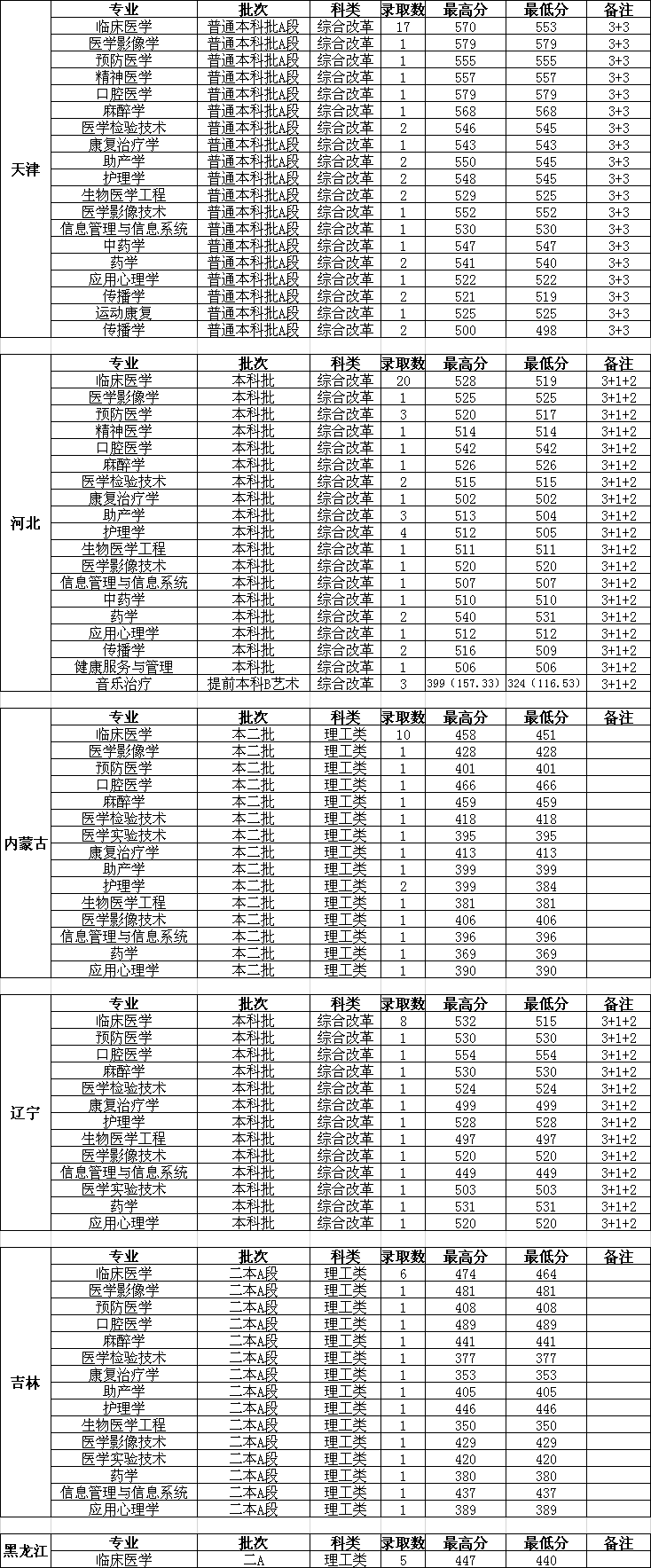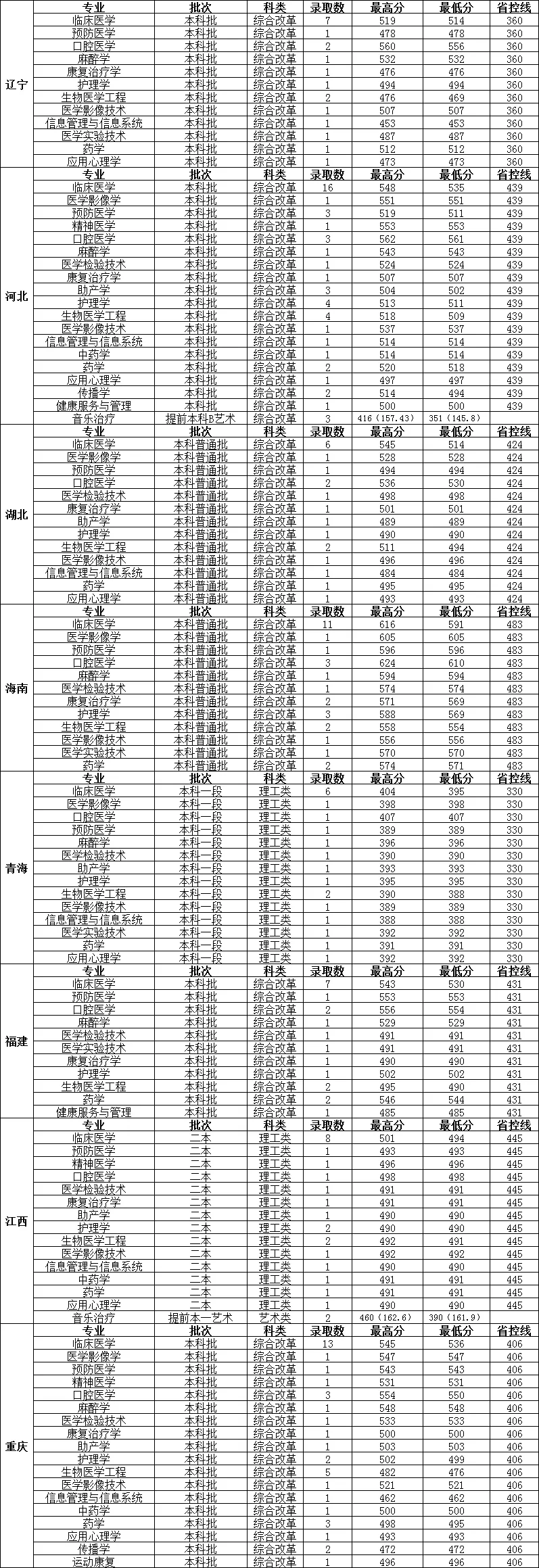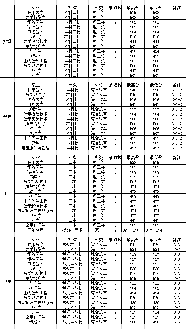 长治医学院2023年分省分专业录取情况
