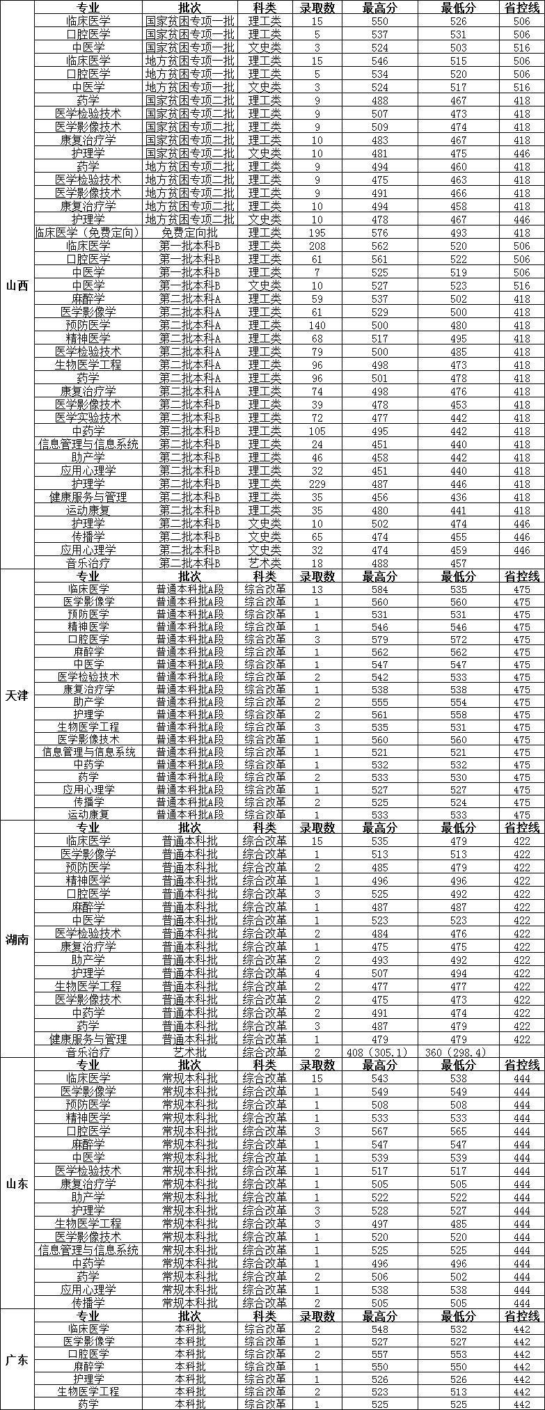 长治医学院2024年分省分专业录取情况