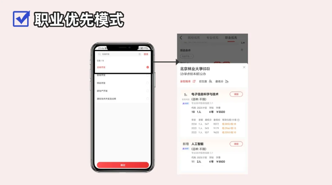 这个模式更适合有明确职业规划的考生选择,将未来职业发展方向作为首要考虑因素,从而选择与之匹配的专业和院校。