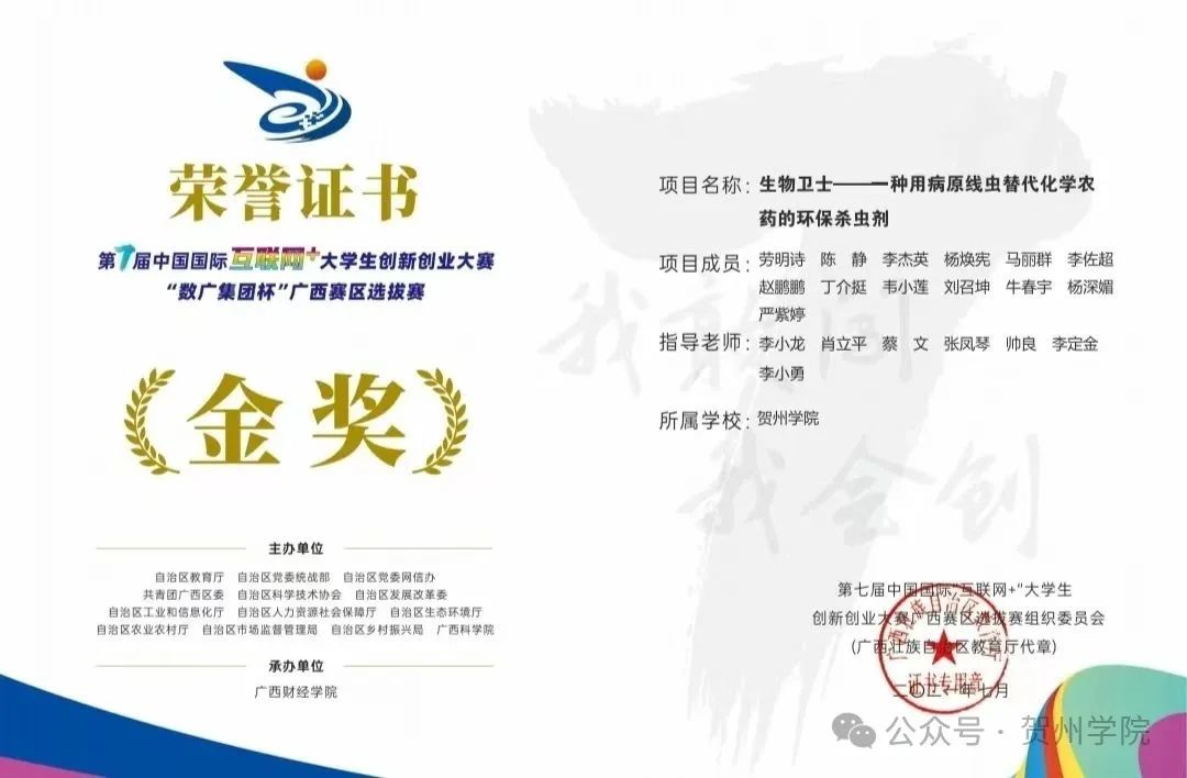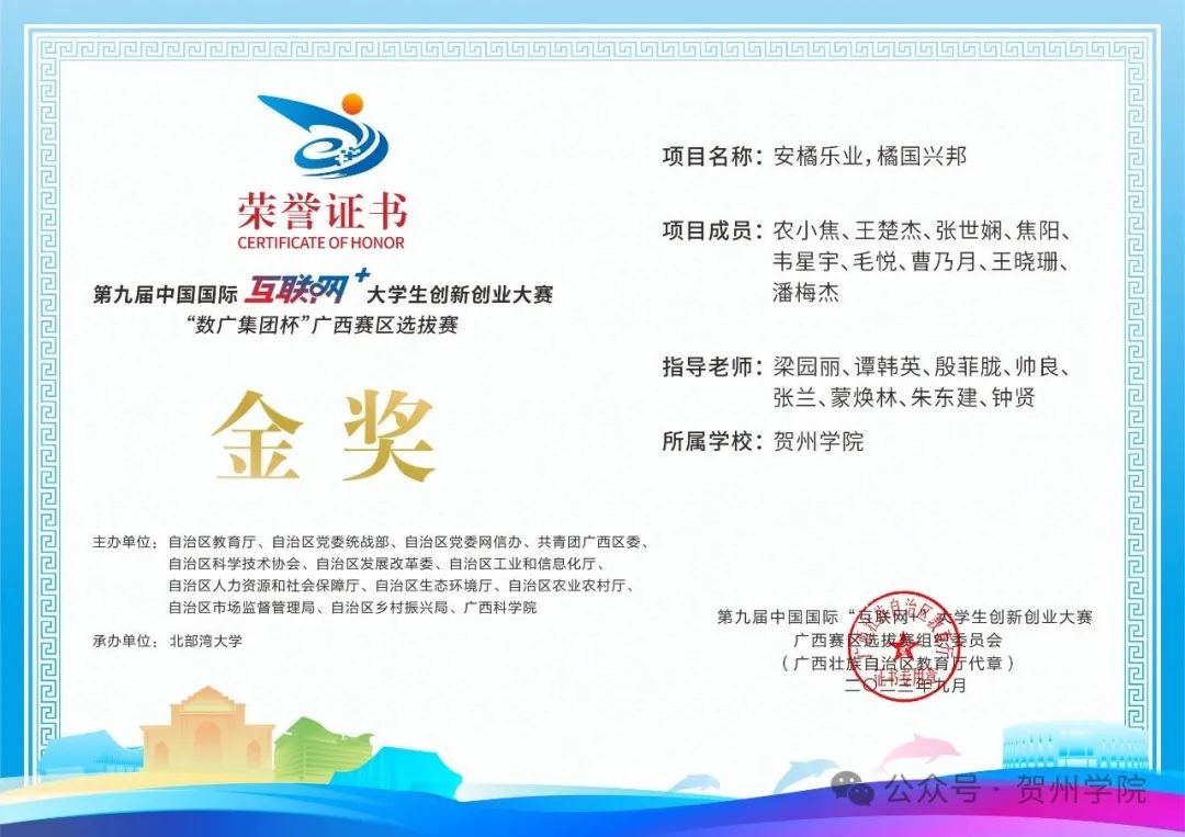 学院学生参加第九届中国国际“互联网+"大学生创新创业大赛获自治区金奖