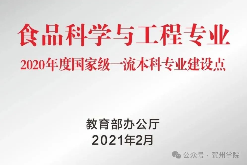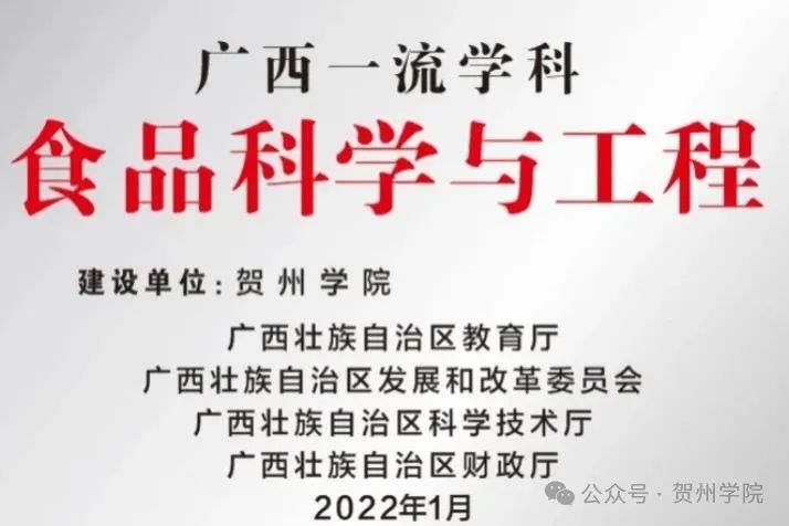 其中,食品科学与工程专业2012年获批自治区特色专业,2018年入选广西一流学科(培育)建设并在2019年顺利通过中期绩效评估,2019年入选广西一流本科专业建设点,2021年入选国家级一流本科专业建设点,2022年入选广西新一轮一流学科(B类)。
