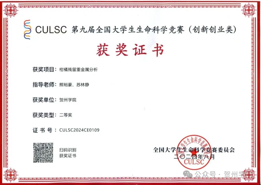学生在第九届全国大学生生命科学竞赛(科学探究类)国赛决赛中获三等奖