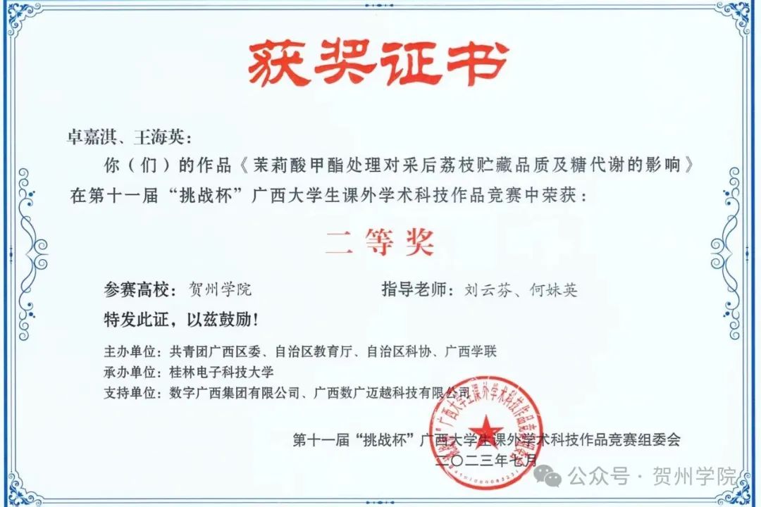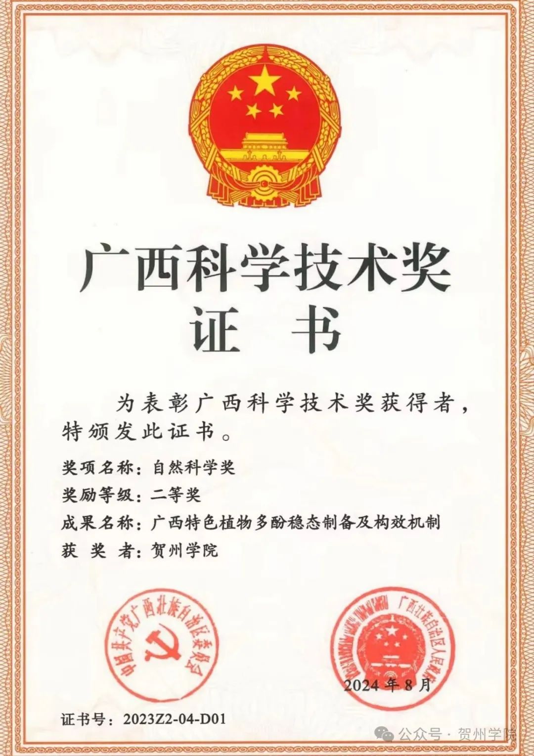 《果蔬贮藏保鲜》与《食品添加剂》被认定为2020年自治区级一流本科课程,《食品化学》被认定为2023年普通本科高校自治区级课程思政示范课程,“食品科学与工程区域性教学团队”获广西普通本科高校基层教学组织。