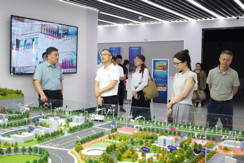 在党委书记席海涛的陪同下,调研组首先参观了我校百度智能网联创新示范基地。该基地作为智能网联技术的展示与交流平台,集自动驾驶、车路协同研发等功能于一体,凭借前沿科技展示和多样化活动形式,获得了广泛关注。调研组对百度智能网联创新示范基地的建设给予了高度评价,认为该基地不仅设备先进、功能齐全,而且紧密贴合产业需求,为学生提供了良好的学习和实践环境。同时,调研组也对我校在智能网联汽车领域的教育教学成果表示了肯定,并期待未来能够进一步加强合作与交流,共同推动智能网联汽车产业的发展。