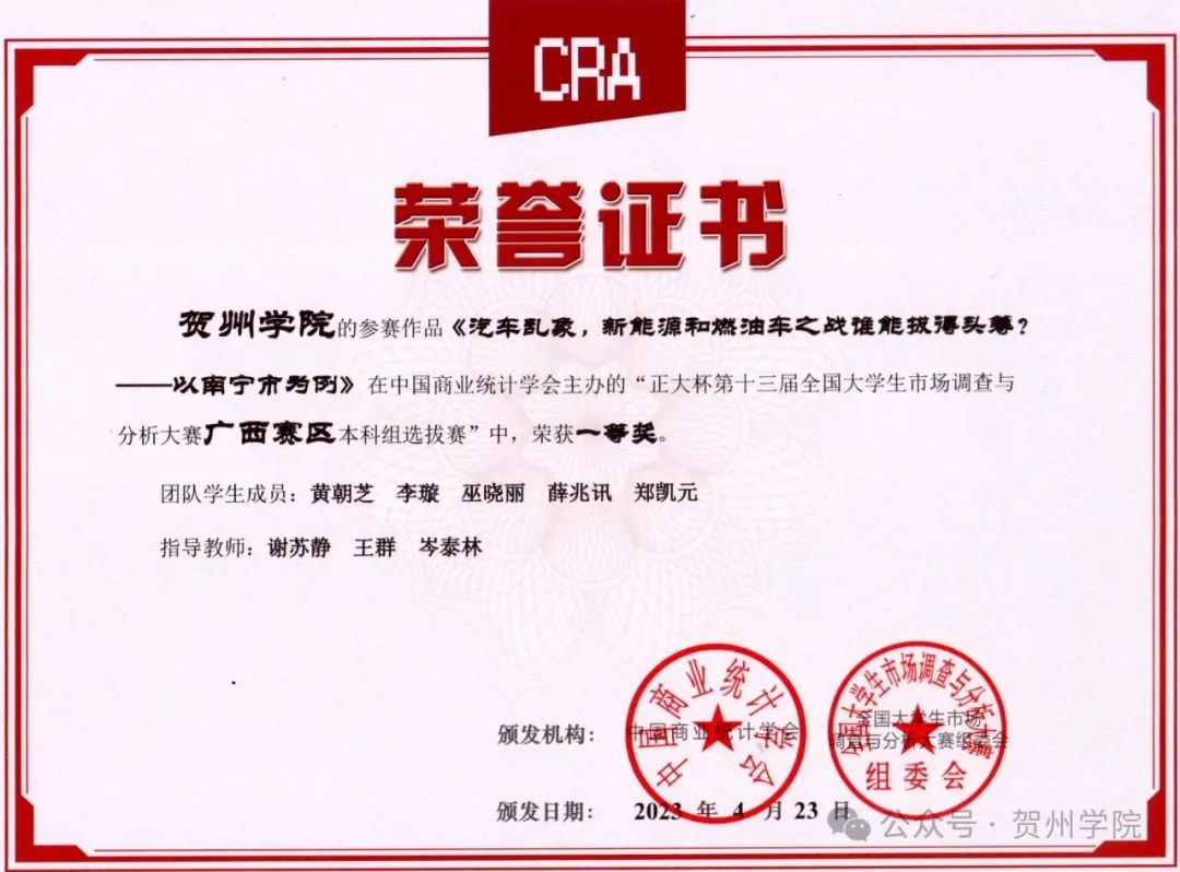 学院学生获“正大杯第十三届大学生市场调查与分析大赛广西赛区本科组选拔赛”一等奖