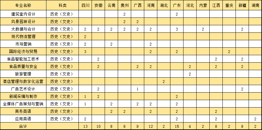 备注:具体专业计划数以各省、市、自治区教育考试院公布为准。