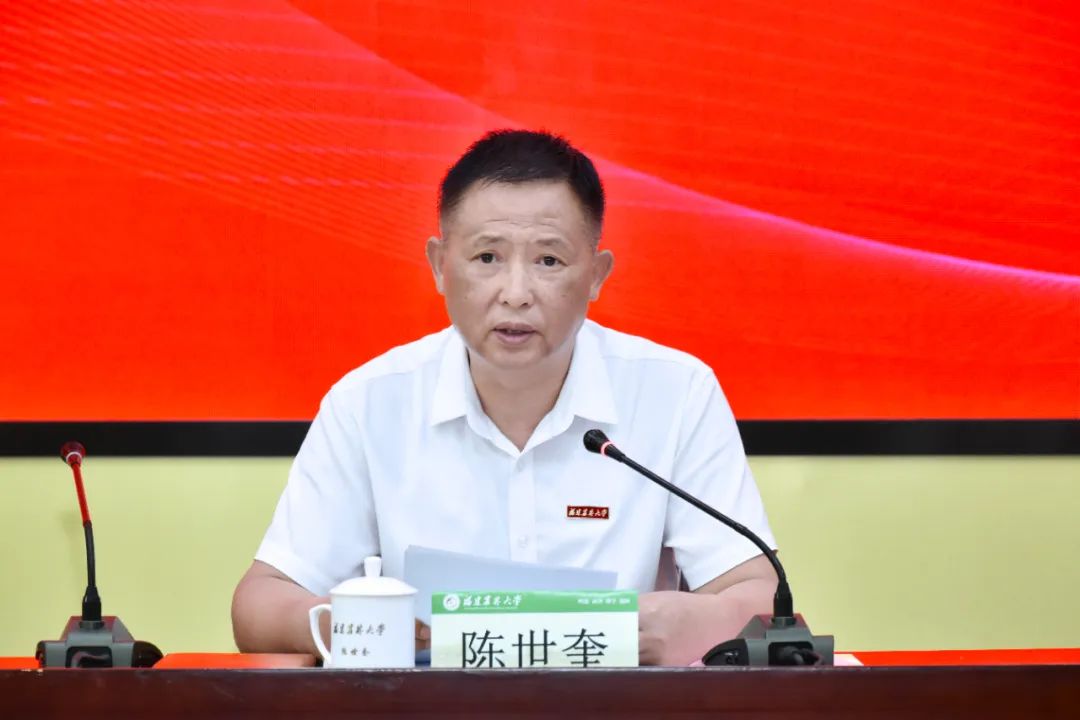 会上,陈世奎作题为“深入学习习近平文化思想,推动我校宣传思想文化工作开创新局面”的重点发言。宣传部汇报了学校宣传思想文化工作有关情况,植物保护学院、林学院、马克思主义学院、校团委先后作交流发言。
