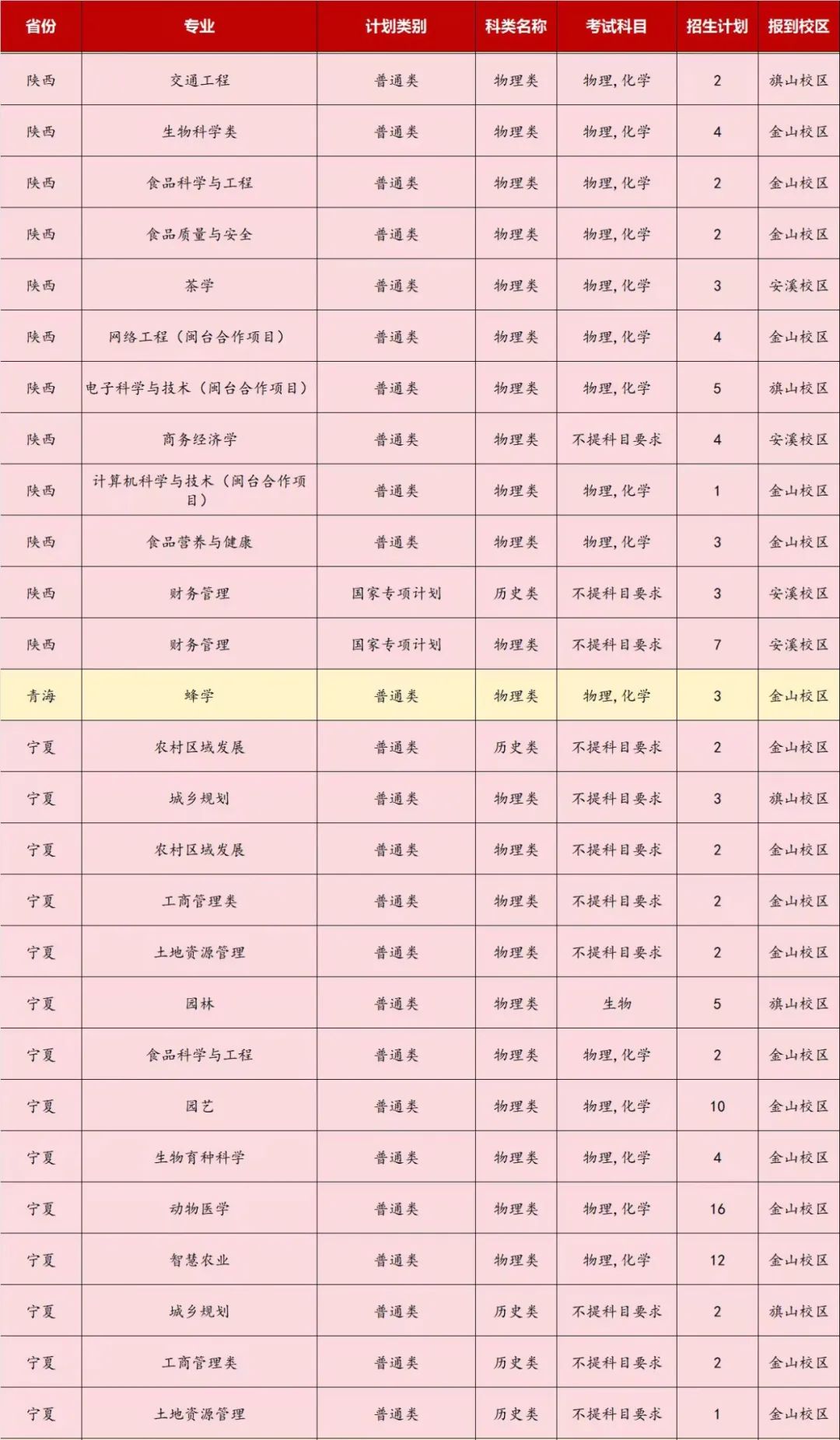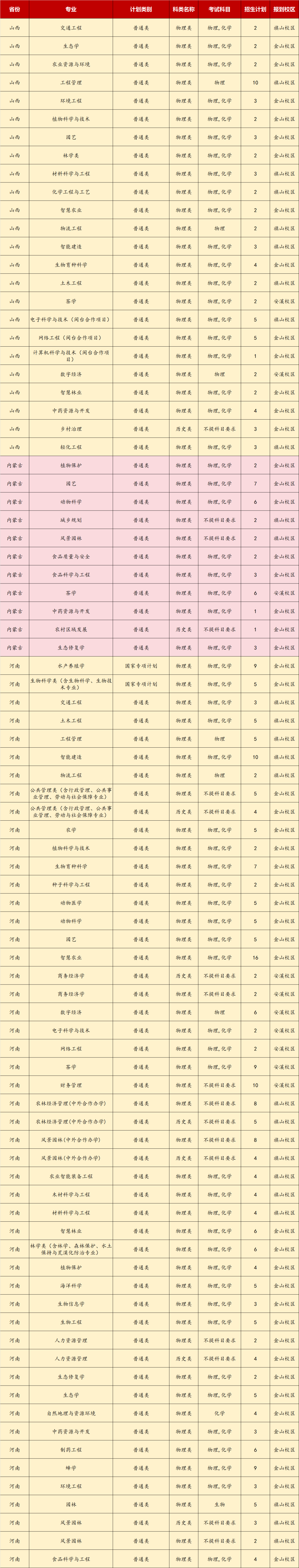 2025年招收培养乡镇农技推广紧缺专业定向委培生计划表