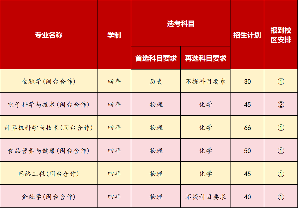 福建省2025年本科普通批闽台合作项目分专业招生计划
