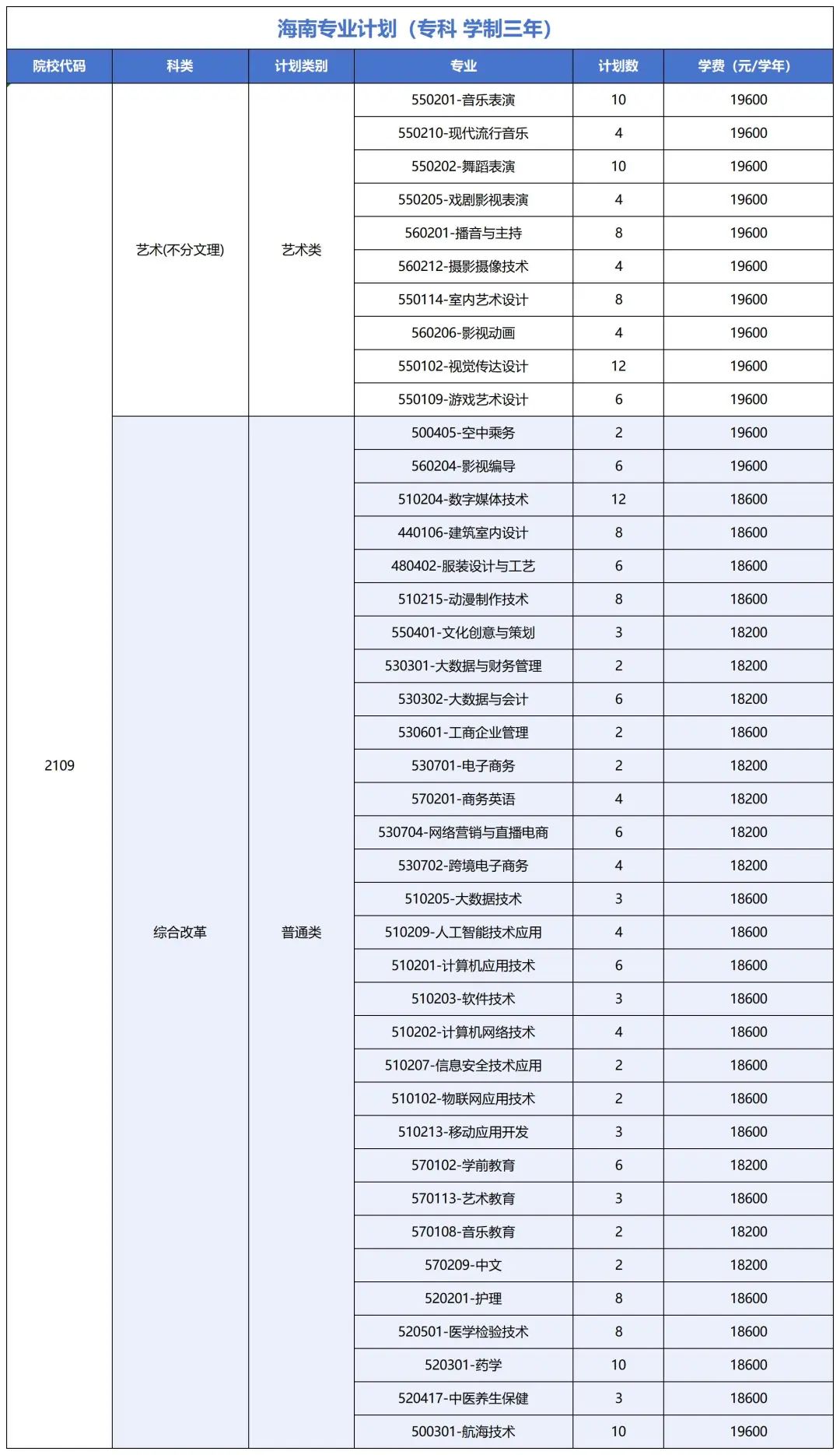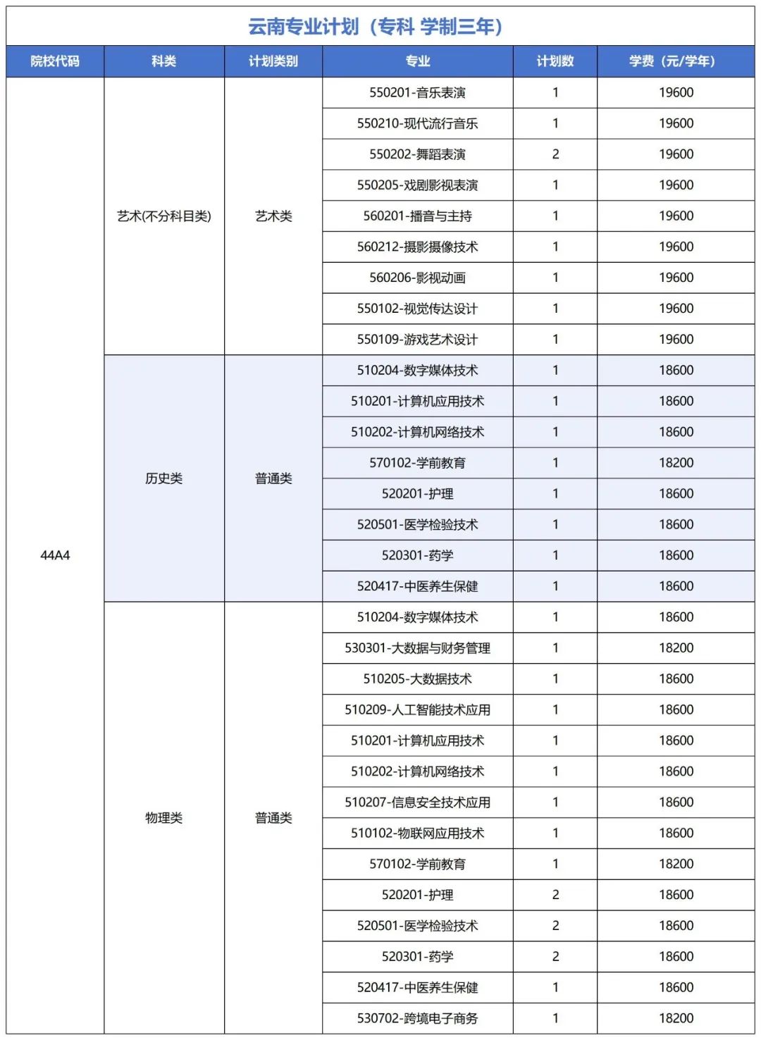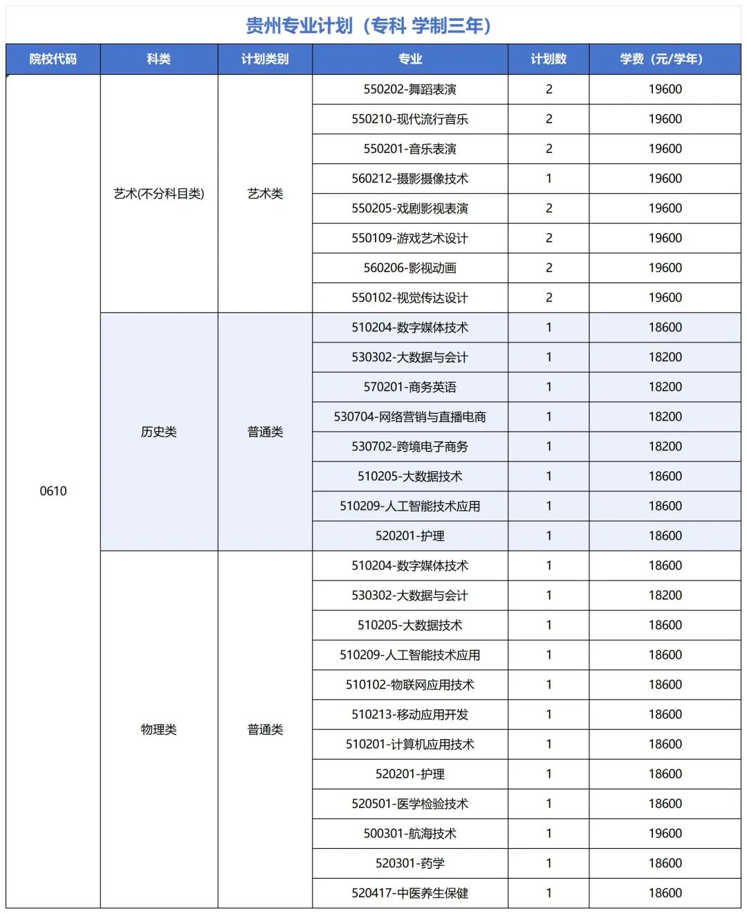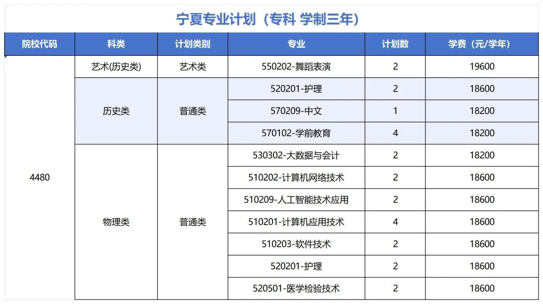 分省分专业招生计划