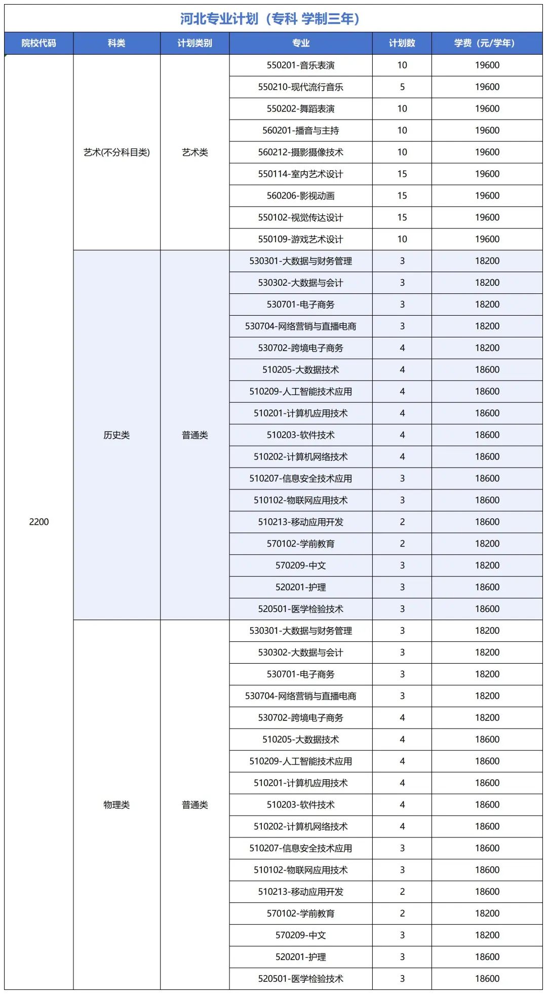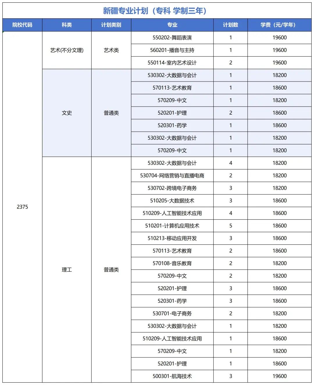分省分专业招生计划及