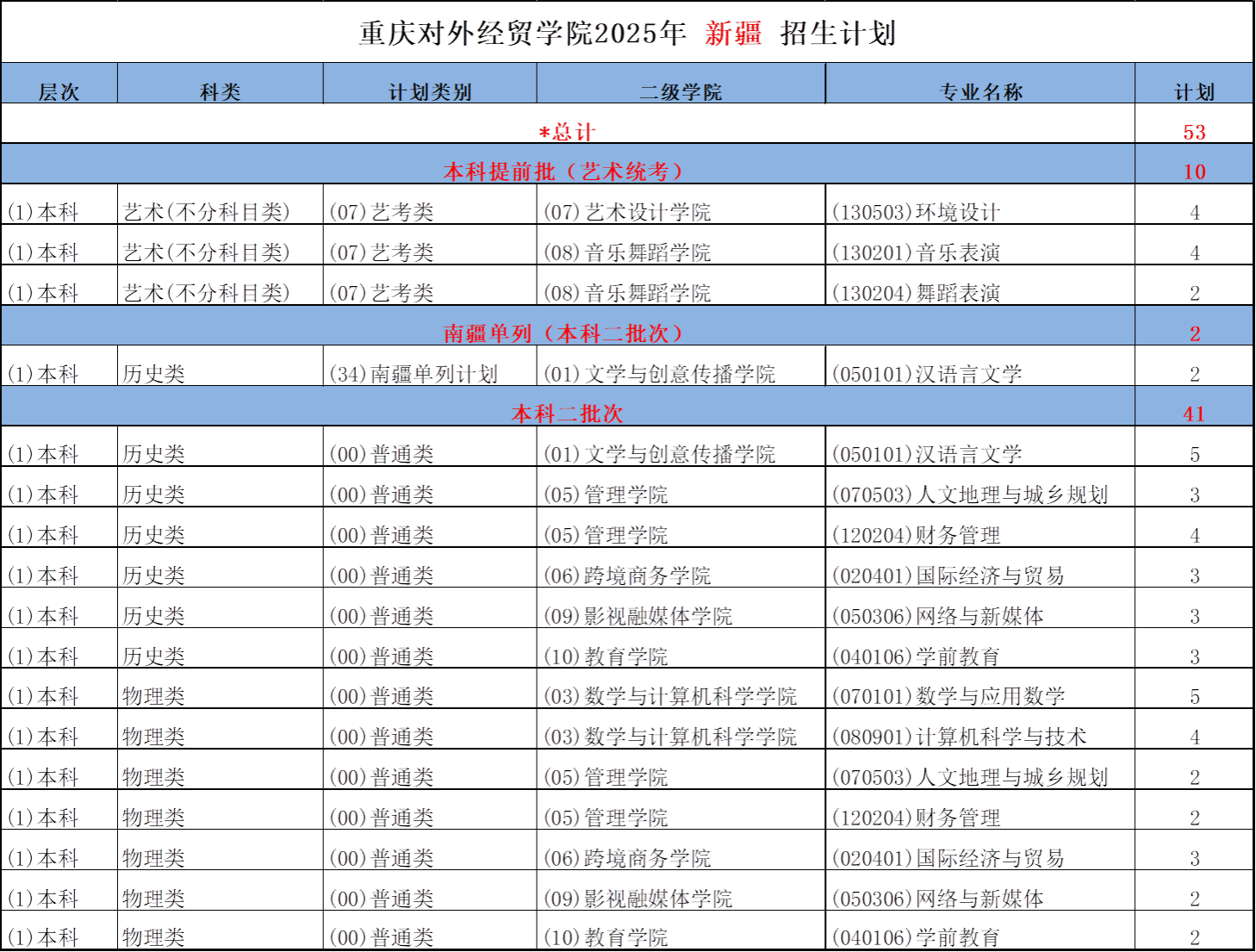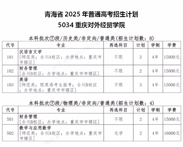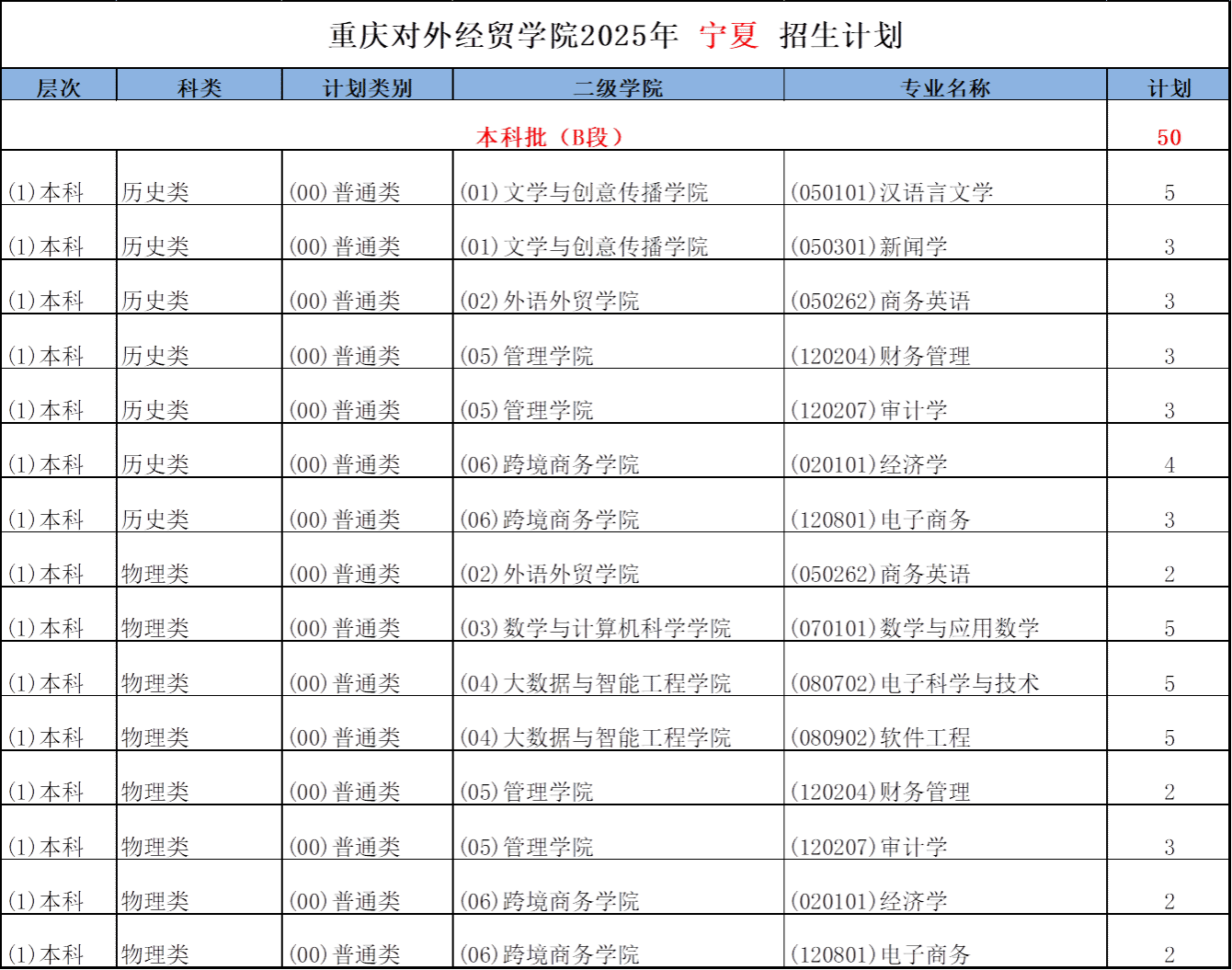 重庆对外经贸学院2025年新疆-宁夏-青海招生计划