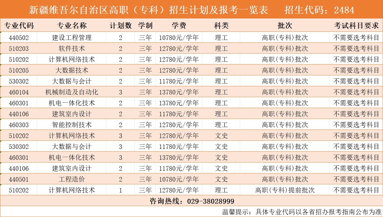 新疆维吾尔自治区2025年招生计划(招生代码:2484)