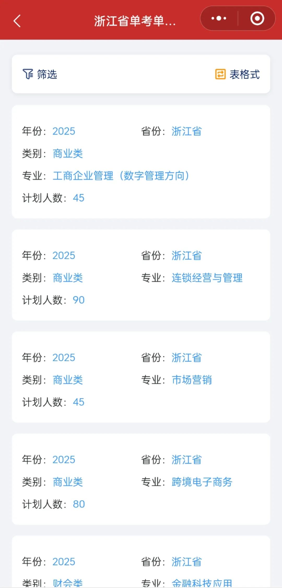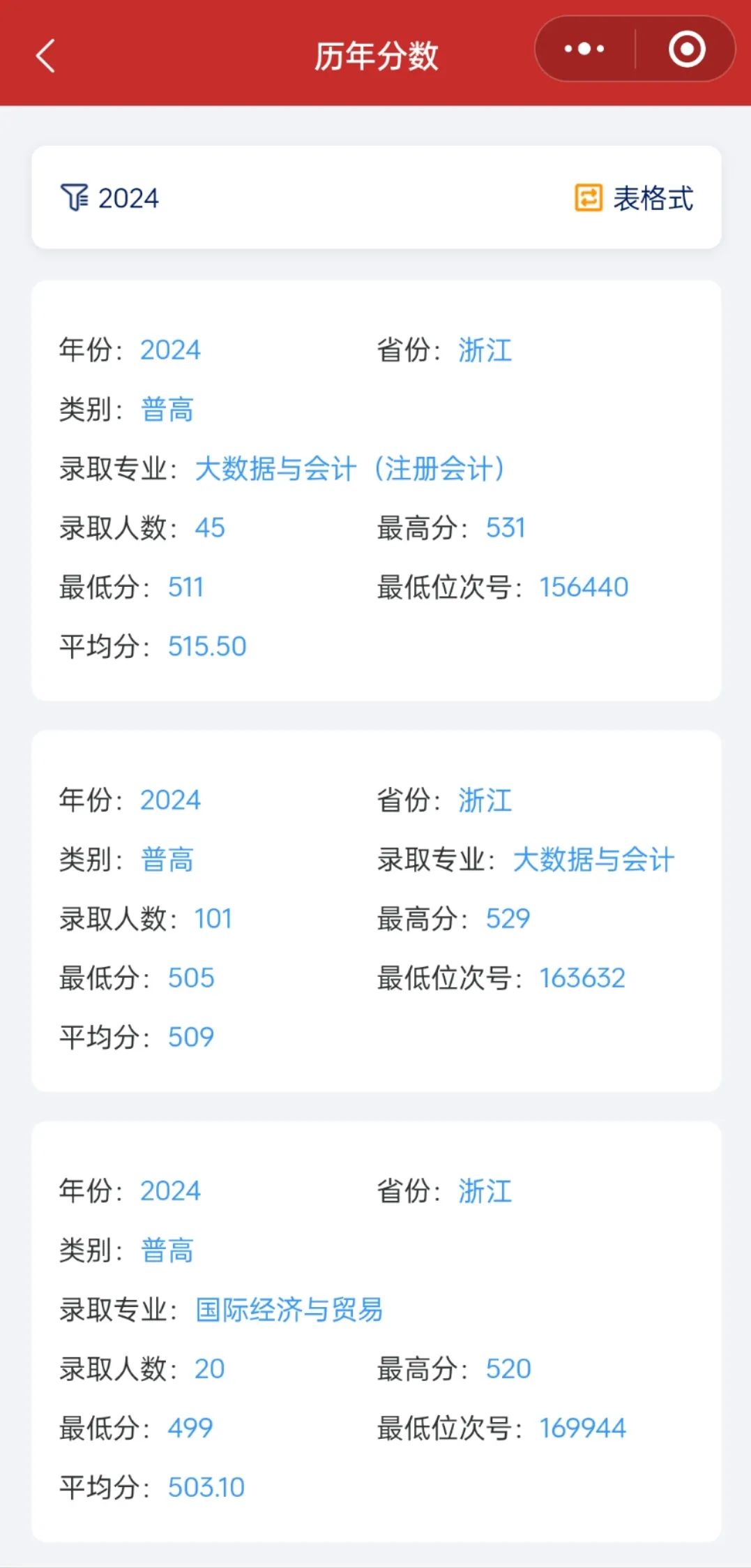 在这里你可以看到浙江商业职业技术学院历年录取情况,方便各位考生及家长了解志愿填报。