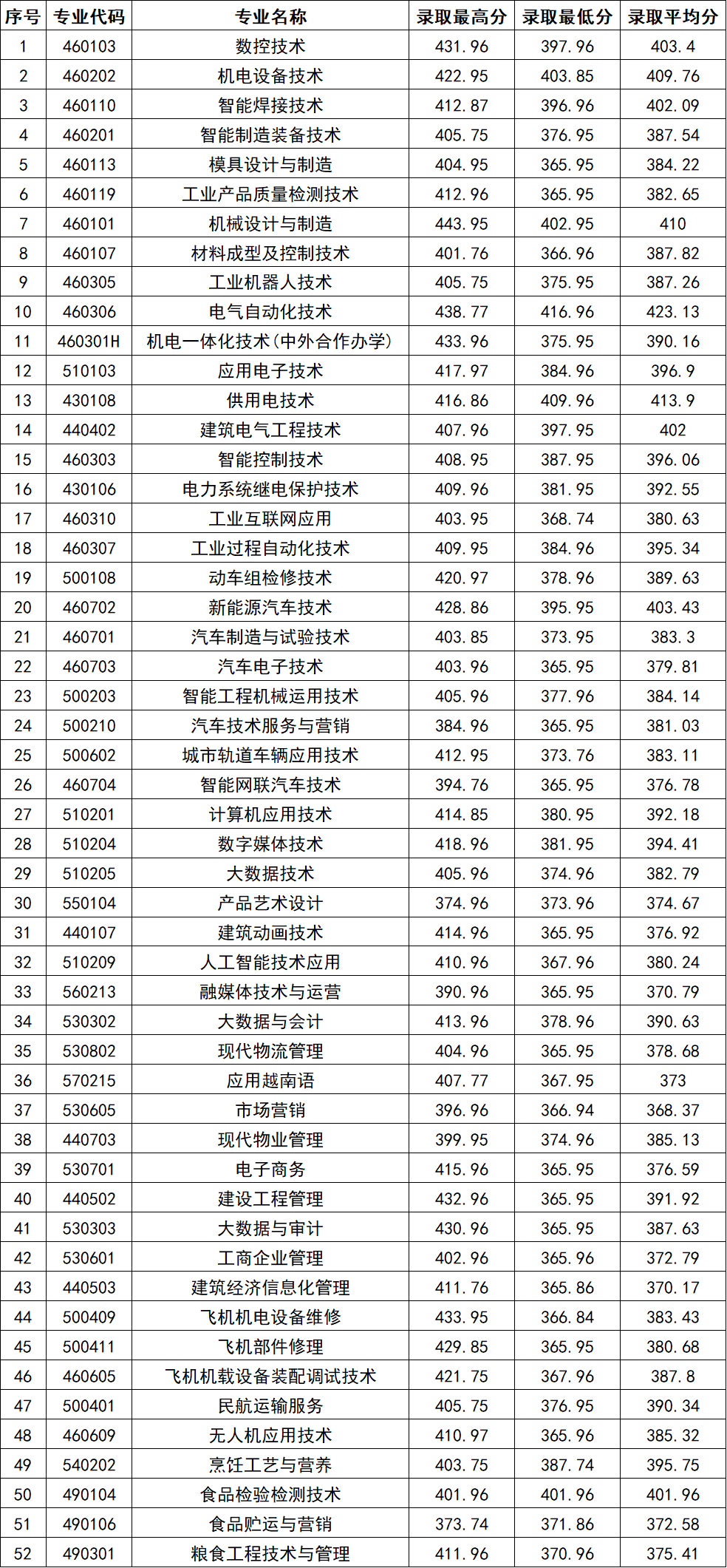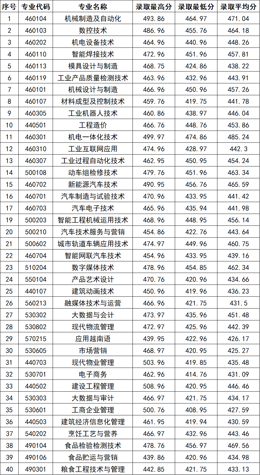 学校2024年云南省高本贯通批(理工类)录取分数情况