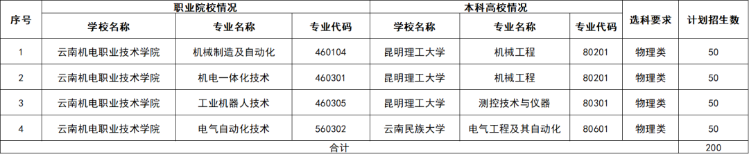 6.机电一体化(中外合作办学)招生计划80人,招生专业代码460301H。面向云南省物理类高中毕业生招生,学费为13000元/人·学年。学校与爱尔兰大西洋理工大学合作,采用“3+0”培养模式,学生3年在云南机电职业技术学院学习,实行中英双语教学,学业合格者可获得我校机电一体化技术专业专科文凭和爱尔兰大西洋理工大学相应证书,三年毕业后可申请到爱尔兰大西洋理工大学就读本科(专升本)。