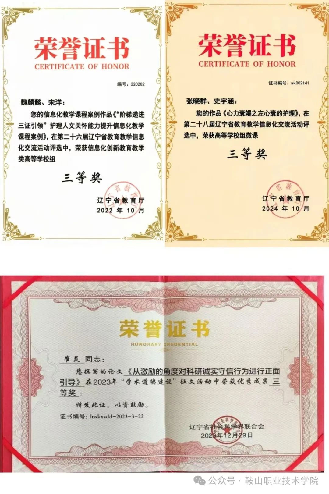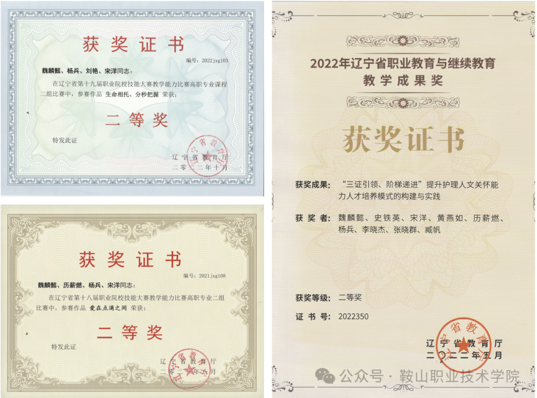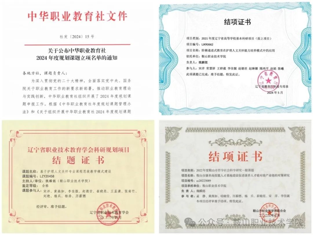 健康护理分院始终以高素质技能人才培养和卓越师资队伍建设为核心,在教科研领域取得丰硕成果:成功立项国家级课题1项、省级课题11项、市级课题4项;教师团队荣获辽宁省优秀教师、辽宁省最美教师、辽宁省职业教育专业带头人及骨干教师、鞍山市技术能手、鞍山市五一劳动奖章等荣誉称号;在省级以上教育教学能力大赛、科研项目和教学成果评选中屡创佳绩。