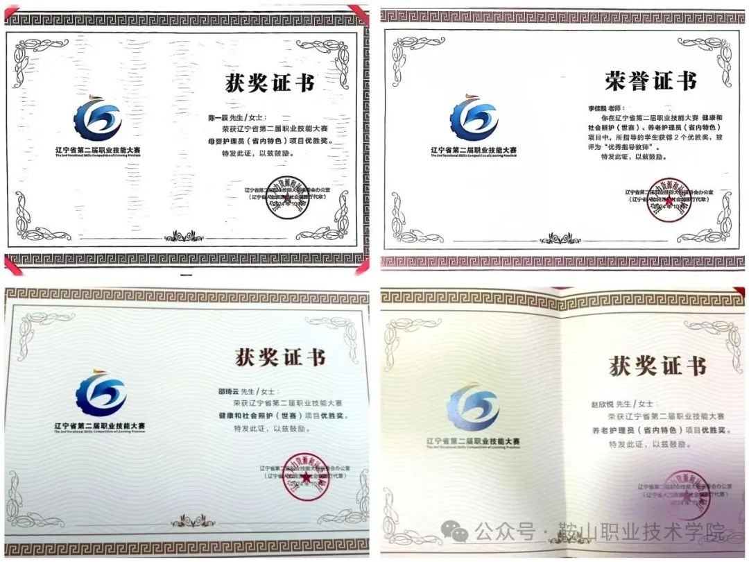 健康护理分院以赛促教、以赛促学,通过竞赛体系实现“能力对接、标准对接、精神对接”,将理论教学转化为实战技能,在真实职业场景中锤炼学生专业素养;引入行业赛项标准,动态优化教学内容,确保人才培养与产业需求同步;弘扬工匠精神,培育精益求精的职业品格。近年来,学生在各级各类职业技能大赛中屡创佳绩,两个赛项晋级世赛,获省级职业技能大赛一等奖1项、二等奖2项、三等奖5项,优胜奖2项,市级职业技能大赛共获奖5项。这些奖项的获得充分彰显了“岗课赛证”融通培养的显著成效,为区域健康服务产业输送了大批高素质技术技能人才。