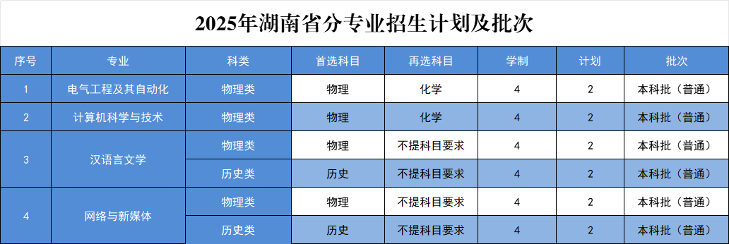 三、2025年我校在湖南省分专业招生计划及录取批次