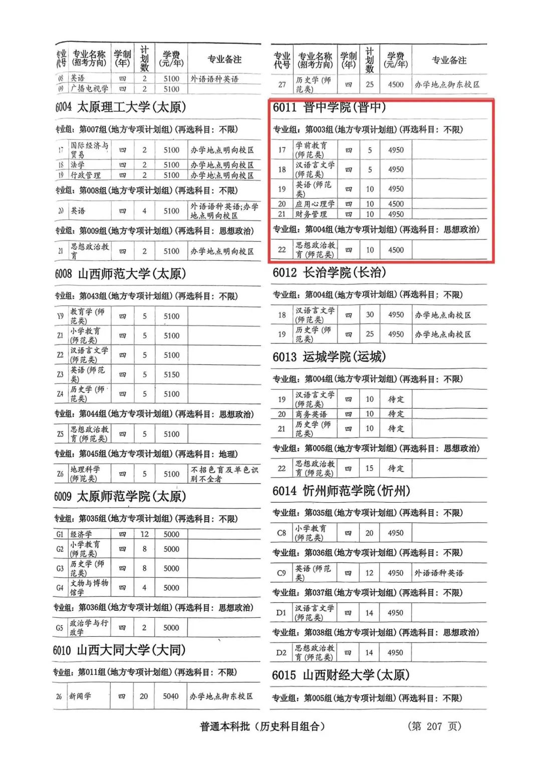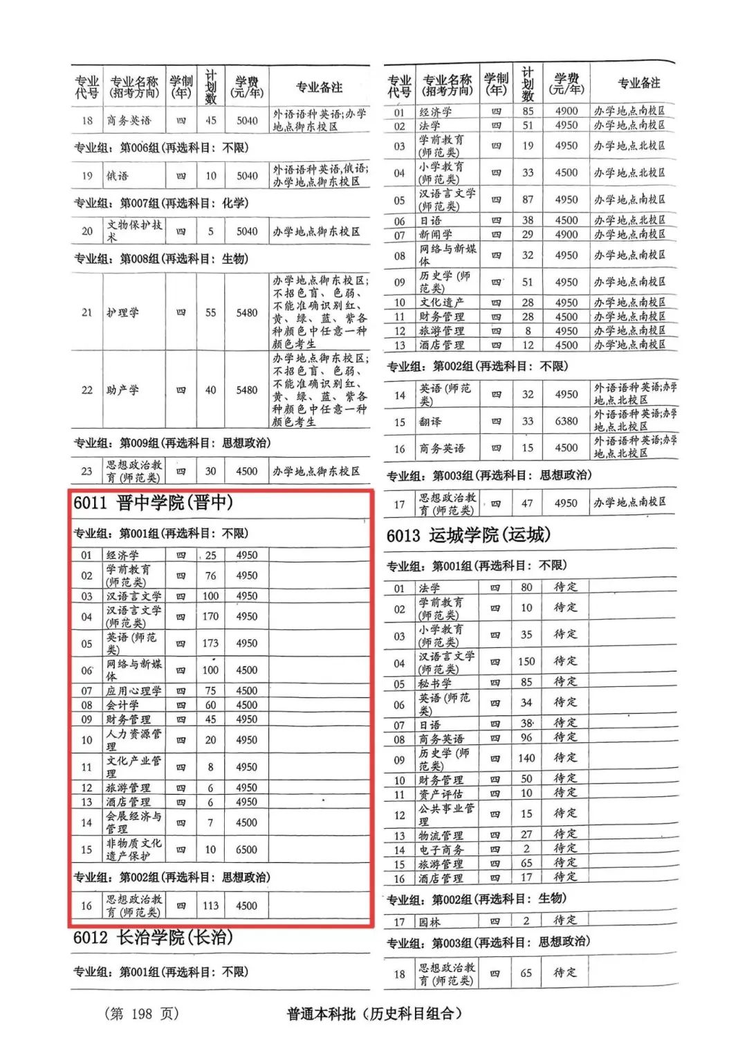 《山西省填报志愿指南》 历史科目组合+体育类+艺术类 第198页、207页