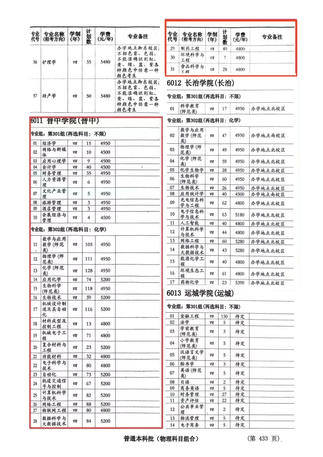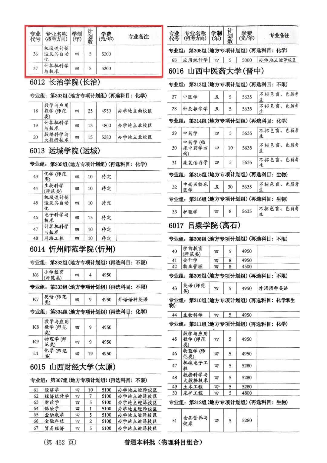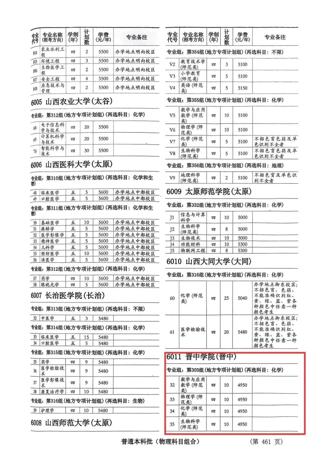 《山西省填报志愿指南》 物理科目组合+体育类+艺术类 第433页、461-462页