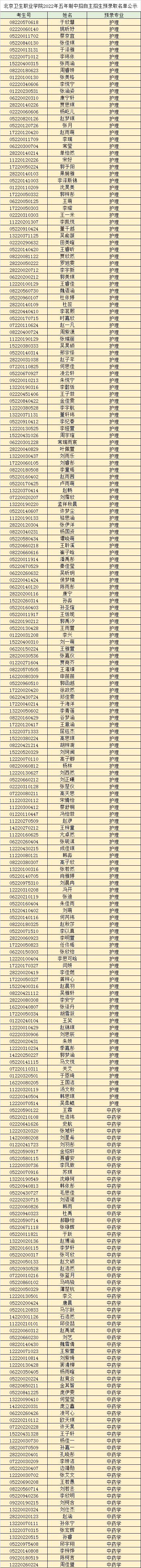 北京卫生职业学院2022年五年制中招自主招生预录取名单公示