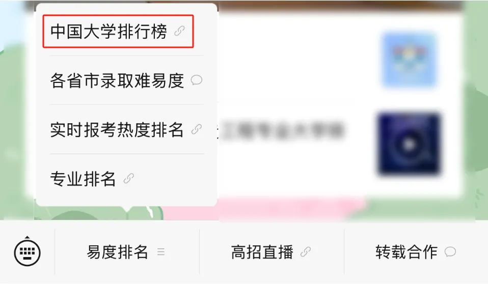 (1)点击菜单栏【易度排名】-【中国大学排行榜】。
