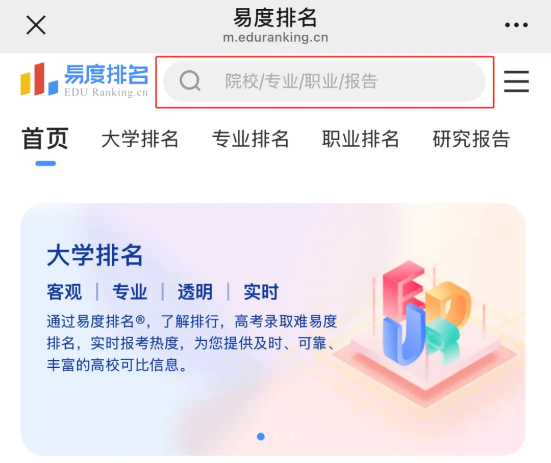 (2)点击上方搜索栏,输入你想知道排名的大学名称。
