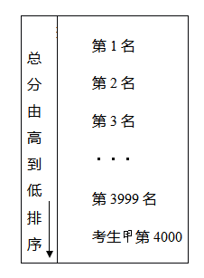 一是先对考生分科类按总分从高到低排序,分数高的考生先检索投档。比如某理科考生甲成绩排在全区全体理科考生的第4000名,需要在该生前面的3999人检索处理完成后,才轮到这位考生(如下图所示)。