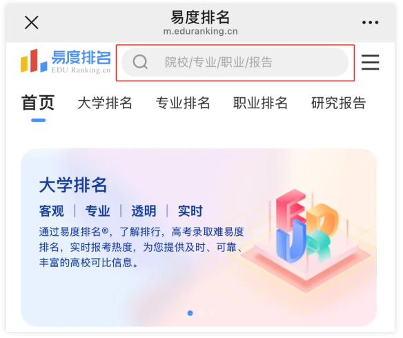 2、点击上方搜索栏,输入你想知道排名的大学名称。