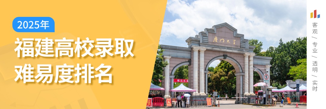 各分段考生可根据难易度指数选择适合自己的学校。如需查看39所院校的完整榜单,可关注【易度排名】公众号,后台私信回复“2025福建”。