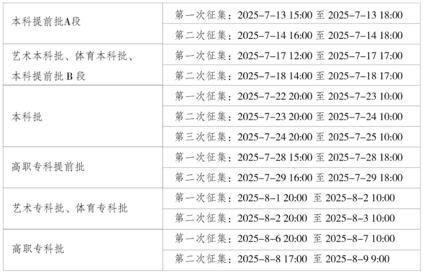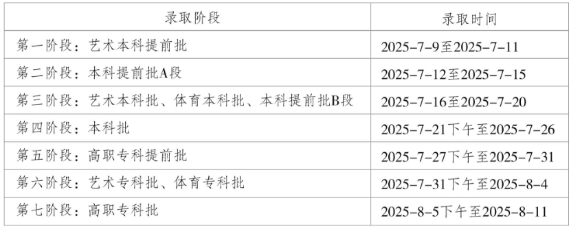 我市2025年普通高考录取工作即将开始,将于8月11日结束,各类别各批次录取进程安排如下。