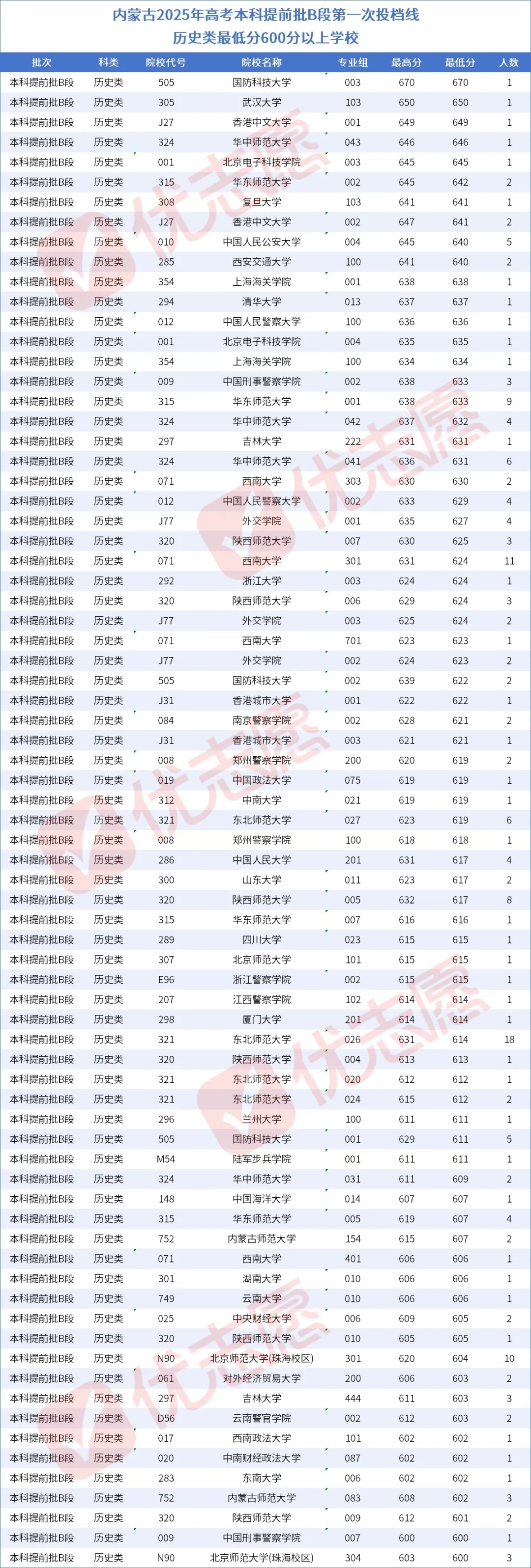 7月8日,内蒙古2025年高考本科提前批B段第一次投档线出炉。