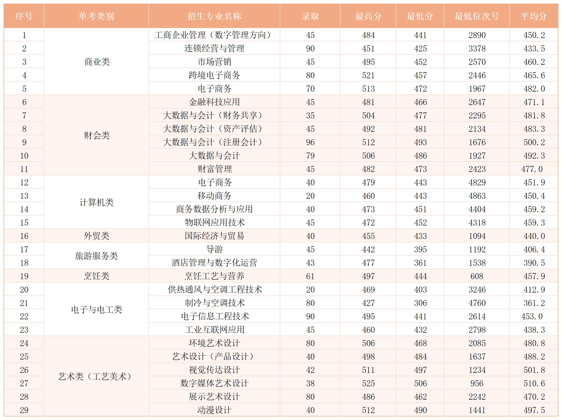 浙商院2025年浙江省单独考试分专业录取投档分数线