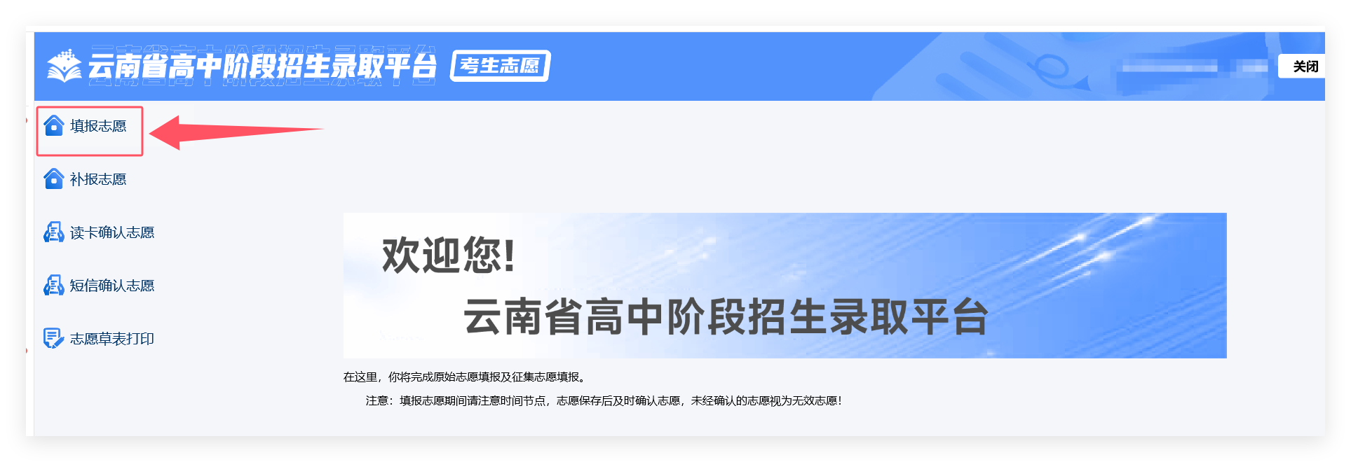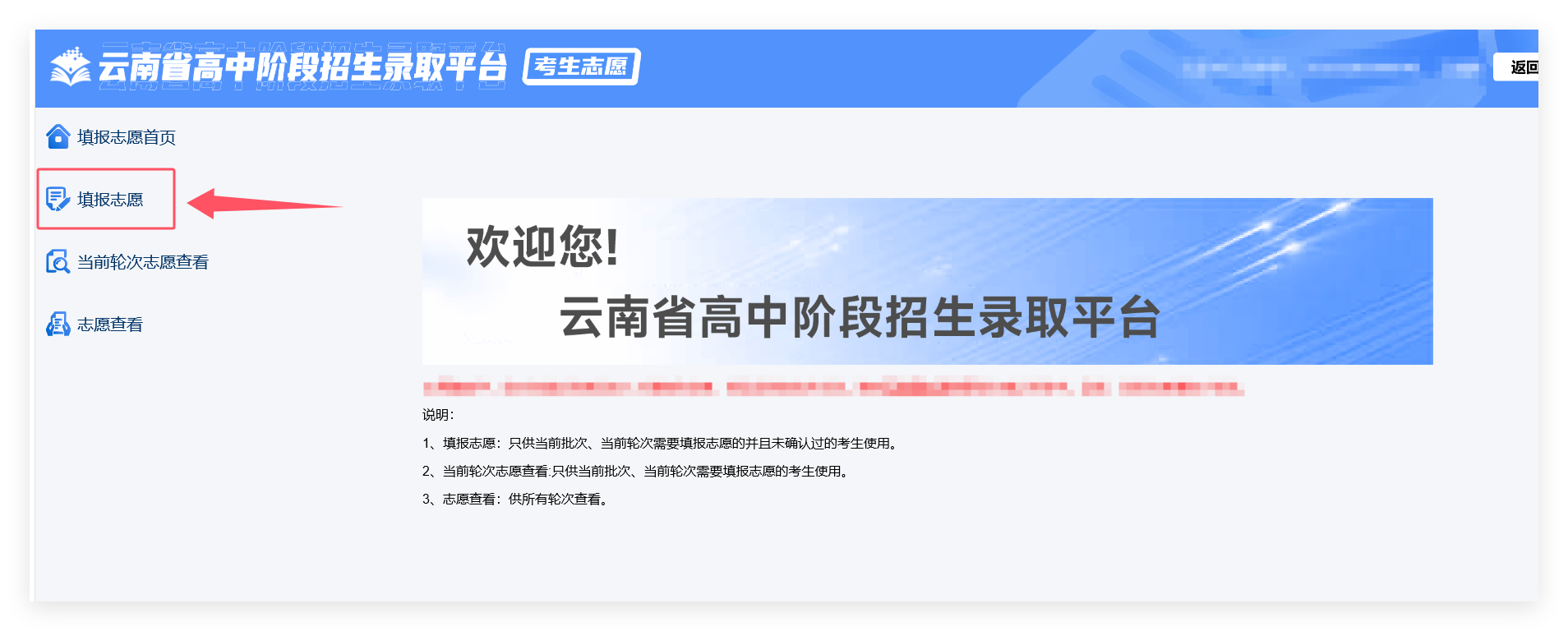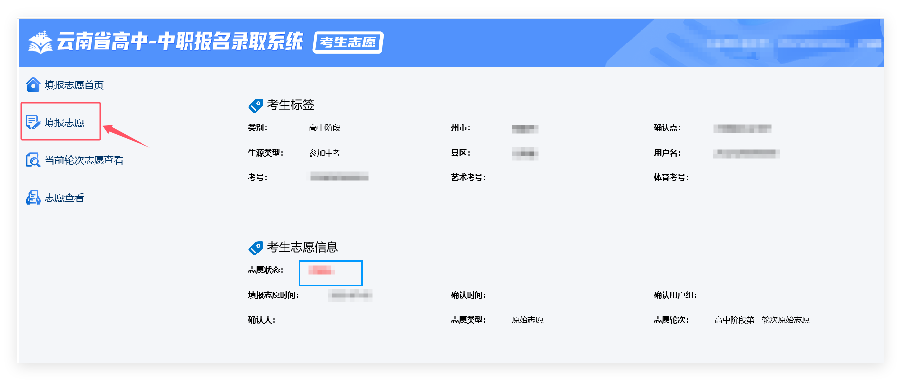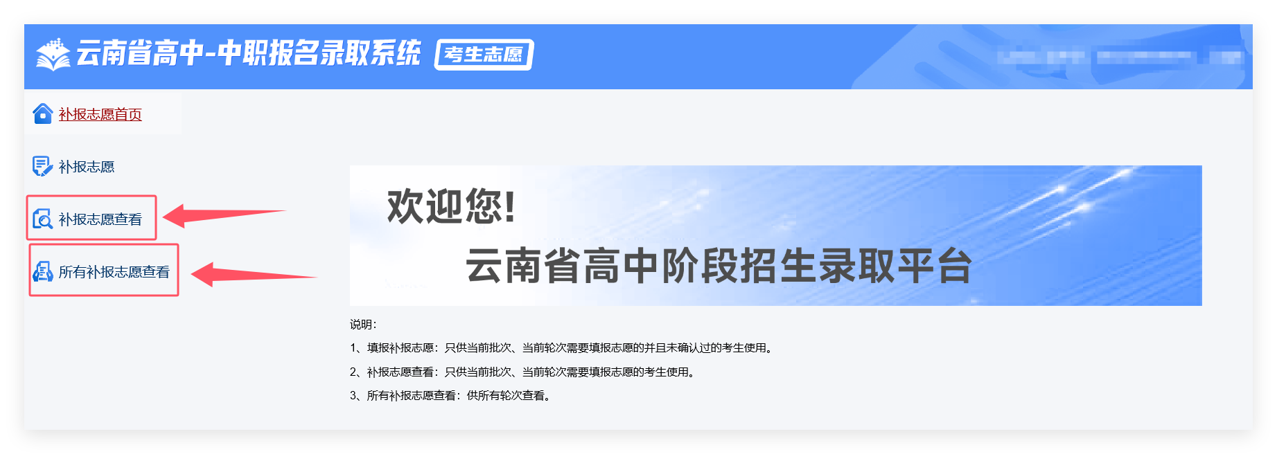 原始志愿和补报志愿系统及操作流程一致,征集志愿期间,符合征集条件的考生可以进入“云南省高中-中职报名录取系统(考生志愿)”,点击【补报志愿】,进入志愿填报操作页面就可以进行考生征集志愿补报。