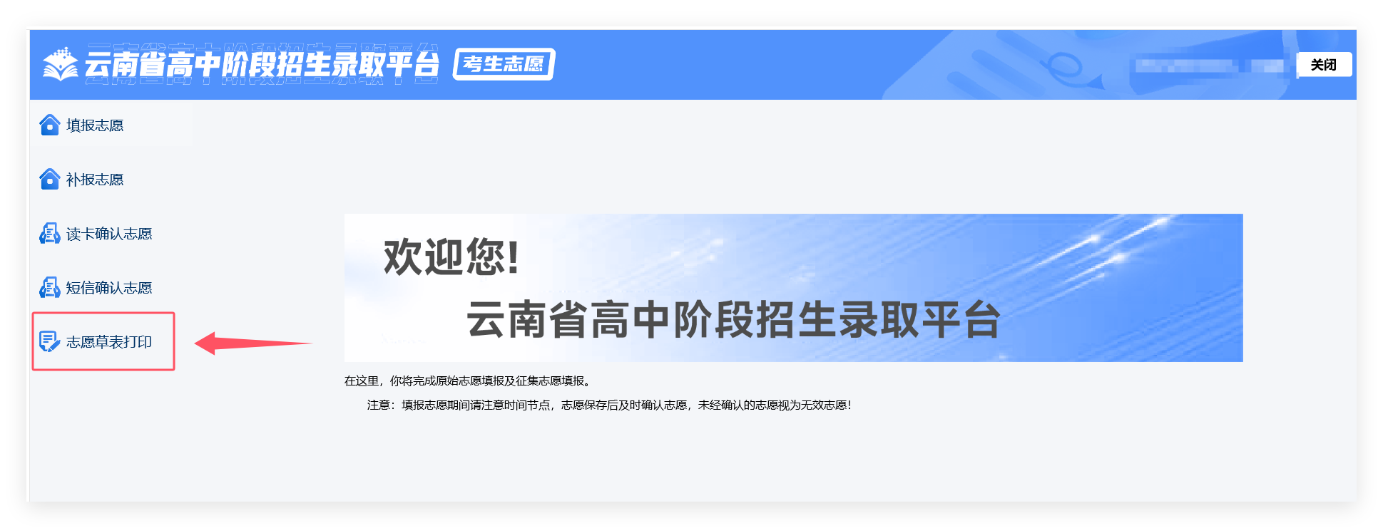 考生完成志愿确认后,可以通过【志愿草表打印】功能打印志愿草表。