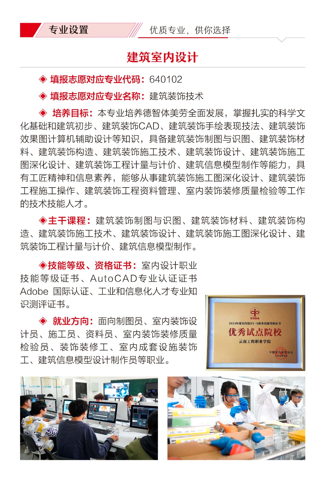 云南工程职业学院2025年五年制高职招生专业共4个:
