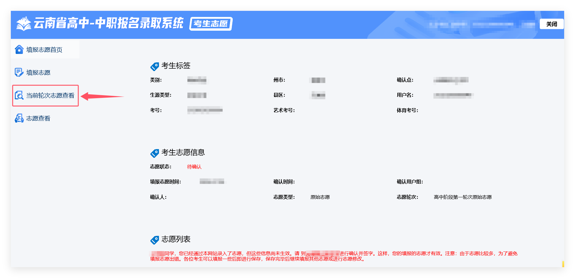 特别注意:所报志愿信息查看无误后,考生必须在规定的时间内到中考报名确认点进行确认并签字,未经确认签字的志愿信息无效。