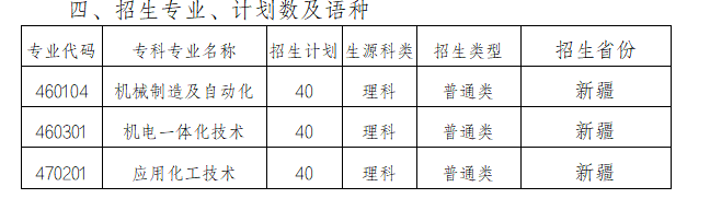 高职阶段:应用化工技术专业由新疆石河子职业技术学院化工与环境工程学院负责
