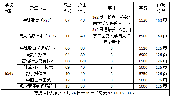 学院是山东省唯一一所公办特殊教育高职院校,位于泉城济南长清大学城,2025年普通高考统招招生计划共540人,其中山东省500人,河北省20人,山西省10人,甘肃省10人。