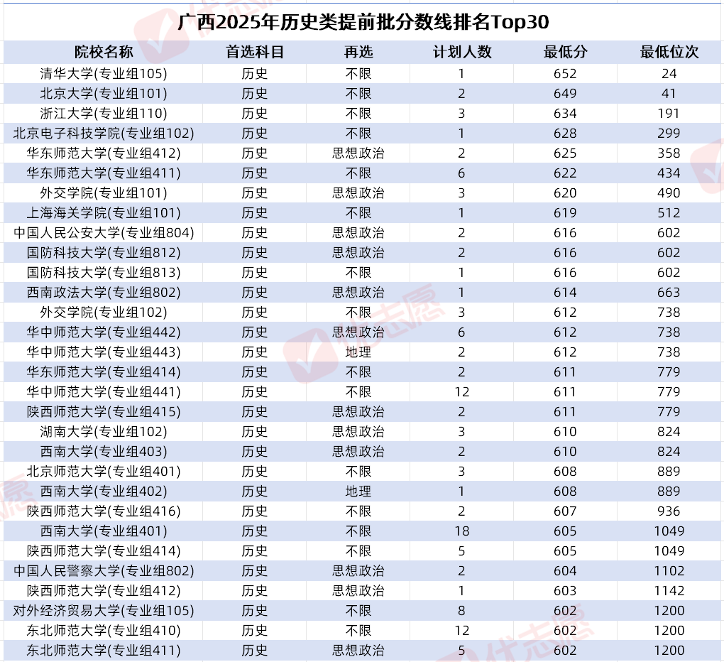 2025年广西高考提前批批次调整,让特色院校竞争格局生变。像上海海关学院在物理类榜单中,其专业组100(611分,位次4187)较去年前进了2386位,上升势头显著;在历史类榜单中,其专业组101(619分,位次512)位列第8,超越了众多985/211院校。