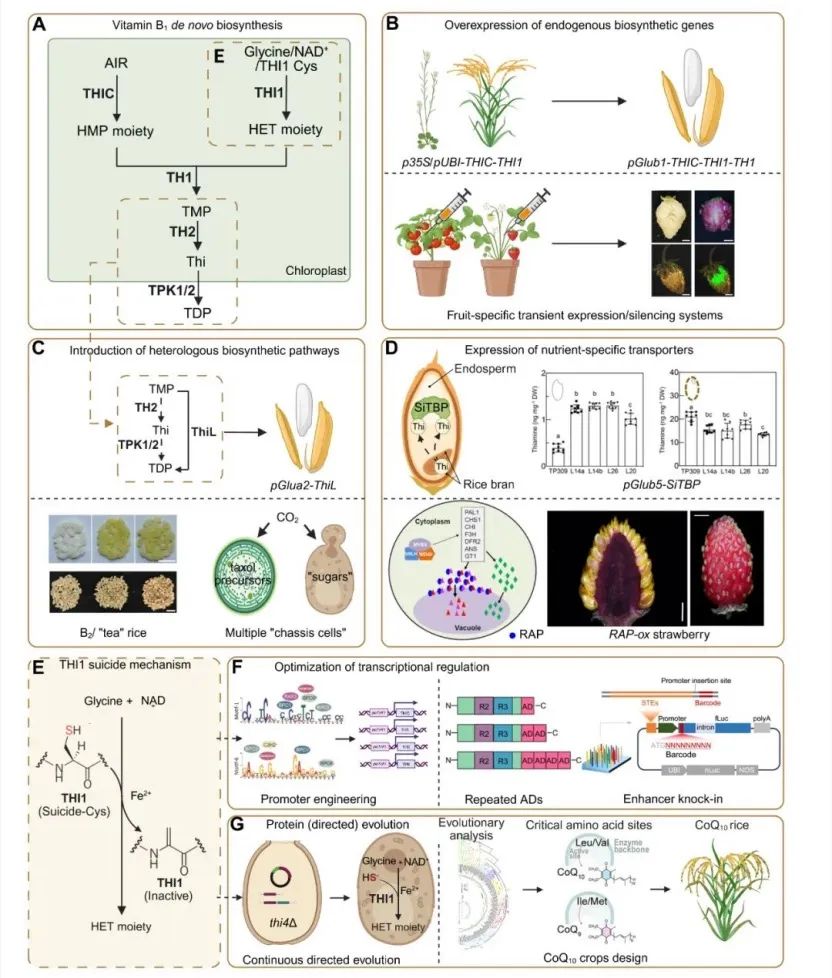 4.系统梳理了合成生物学策略指导下的植物营养强化思路,并以维生素B1生物强化为核心案例,提出具有前瞻性的下一代作物营养提升路径