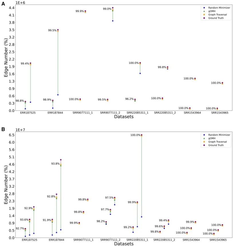 Construction of edit-distance graphs for large sets of short reads through minimizer-bucketing.