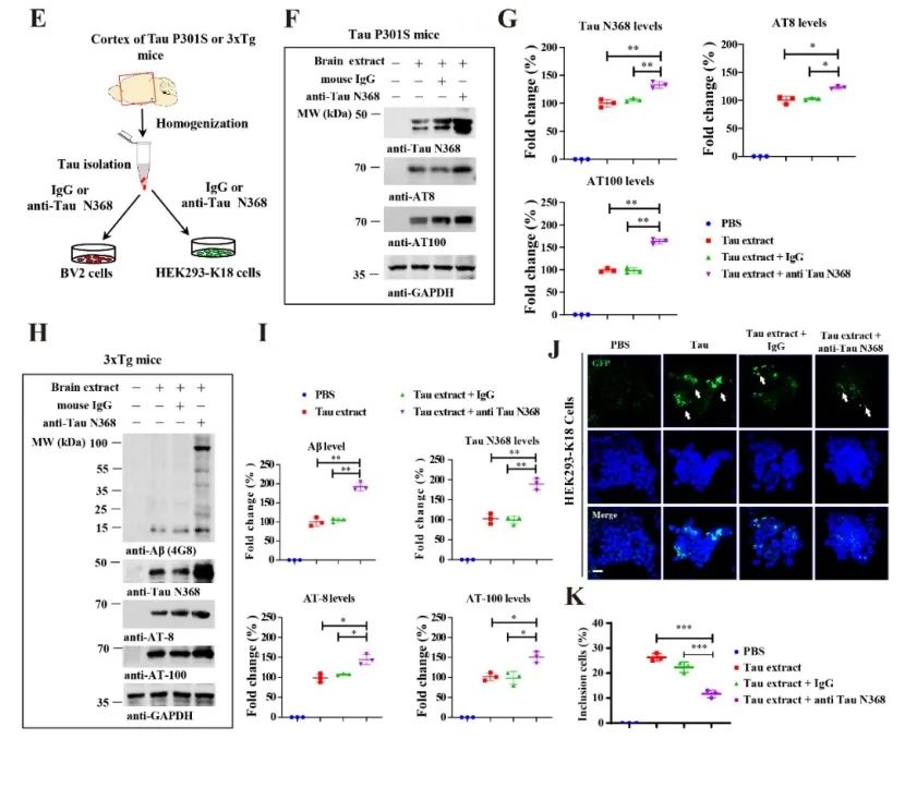 8.靶向病理Tau片段N368的免疫疗法在小鼠模型中不仅清除Tau缠结,还同步改善Aβ沉积、激活神经营养信号并逆转认知损害,为AD精准治疗提供了全新方向