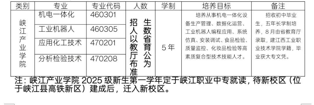 4.就读地址:2025级新生第一学年暂定于峡江县职业中等专业学校(老校区)就读,待新校区(位于高铁新区)建成后,进入新校区就读。